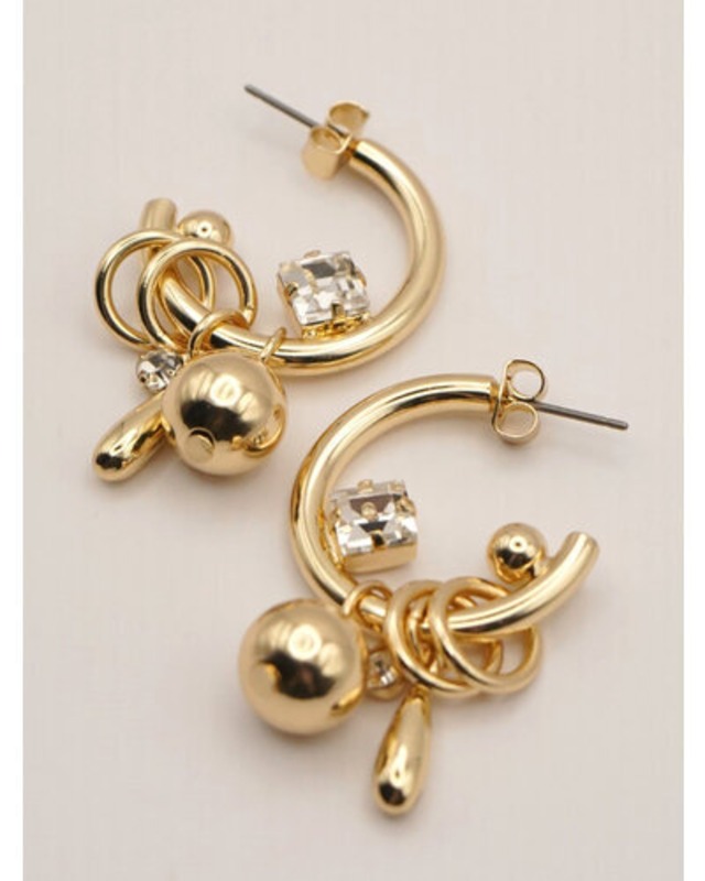 CHIGNONオリジナルデザイン じゃらっとしたモチーフと程良いボリューム感が印象的な遊び心たっぷりのフープピアス。それぞれのパーツをバランスよく配置しつつ動きを活かしたデザインは、着けるだけで一際目立つ主役級ピアスとなっております。カラーはシルバー、ゴールドの他に、SV×GDのミックスもご用意いたしました。同型でイヤリングもご用意いたしております。 サイズ:約H40×W10×D25mm 重さ:約4.5g(片耳/キャッチ含まず) 素材:チタンポスト・真鍮・ガラス カラー:シルバー ゴールド ミックス 【ご予約商品についてのご注意】 ★商品発送は、入荷予定のお日にちが目安となります. 商品によっては遅れる場合がありますので ご了承下さいませ。 ★商品が入荷次第発送致します。 ★ご予約販売済みの商品はお客様の都合によるご注文のキャンセル、変更は一切出来かねますので サイズ等、よくご確認の上お申し込み下さい。 ★上記サイズは展示会時点の生産採寸のため修正が入ることがございます。 ★ご覧のデバイス画面により実際の商品と多少色味が異なる場合がございます。 ★印の点をご了承の上ご注文をお願い致します