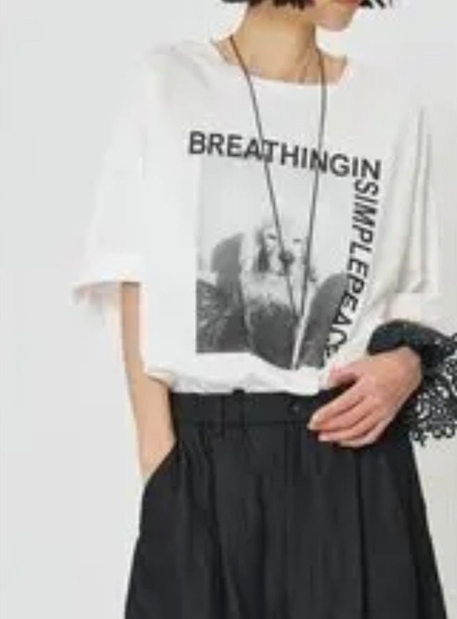CHIGNON定番のPhoto Teeシリーズ。 今回はアニマルPhotoをセレクト。Photoとロゴの絶妙なバランスが、スタイリングにキャッチーさをプラスしてくれます。ゆるい印象を与える犬に、BREATHING IN SIMPLE PEACE=”穏かな平和を深く吸い込む” を添えて。 生地は程よい薄さの30天竺をセレクトし、春~晩夏までゆったりご着用いただけるサイズ感に仕上げました。 同型で8461-101KK<CAT>Teeも展開しております。 着丈:68cm 身幅(半身):60cm 肩幅:58cm 袖丈:25.5cm 【カラー】 ホワイト チャコール 【素材】 綿:100% こちらの商品は実店舗と在庫を共有しているため、完売の場合もございます。 ☆プラウザや環境によって実物とカラーが異なる場合があります。 予め御了承の程、よろしくお願いいたします。 ★不良品以外の返品交換は致しておりません。 サイズなどご確認の上ご購入していただきますようよろしくお願いいたします。 お客様のご都合による返品交換もお受けできかねます。