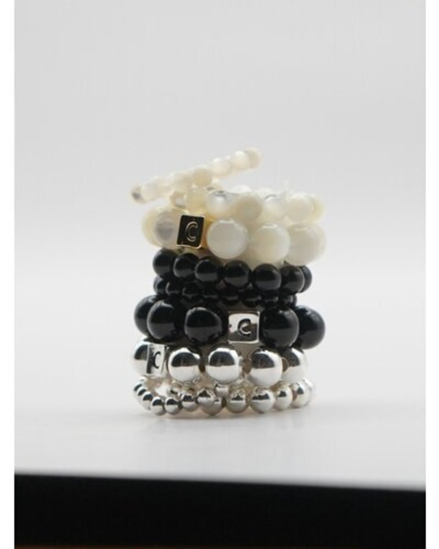 CHIGNONオリジナルデザイン 丸玉ビーズリング3本セットは、指に着けてるだけでトレンド感とおしゃれさを増し増しにしてくれる遊び心のある大人可愛いリングとなっております。それぞれサイズの違う丸玉リングですが、ゴムリングなのでFREEサイズで愉しめるのも嬉しいポイントです。カラーは、オフホワイト(マザーオブパール)、ブラック(オニキス )、シルバー(真鍮/メッキ)の3色をご用意いたしました。シルバーは、中空の真鍮玉を使っていますので見た目はもちろん、触った時の感触や重さも高級感のある仕上がりになっております。一番大きな丸玉リングにはCHIGNONのCが刻印された変形スクエアパーツが施されております。 ※ゴムリングの為、ゴムの伸縮加減には個体差がございます。 ※破損の原因となる為、無理な力を加えないようご使用下さい。 サイズ:FREE(約5~11号) 重さ:約3.5g(セット) 素材:真鍮・ゴム・マザーオブパール(オフホワイトのみ)・オニキス (ブラックのみ) カラー:オフホワイト(マザーオブパール) ブラック(オニキス ) シルバー(真鍮/メッキ) 【ご予約商品についてのご注意】 ★商品発送は、入荷予定のお日にちが目安となります. 商品によっては遅れる場合がありますので ご了承下さいませ。 ★商品が入荷次第発送致します。 ★ご予約販売済みの商品はお客様の都合によるご注文のキャンセル、変更は一切出来かねますので サイズ等、よくご確認の上お申し込み下さい。 ★上記サイズは展示会時点の生産採寸のため修正が入ることがございます。 ★ご覧のデバイス画面により実際の商品と多少色味が異なる場合がございます。 ★印の点をご了承の上ご注文をお願い致します