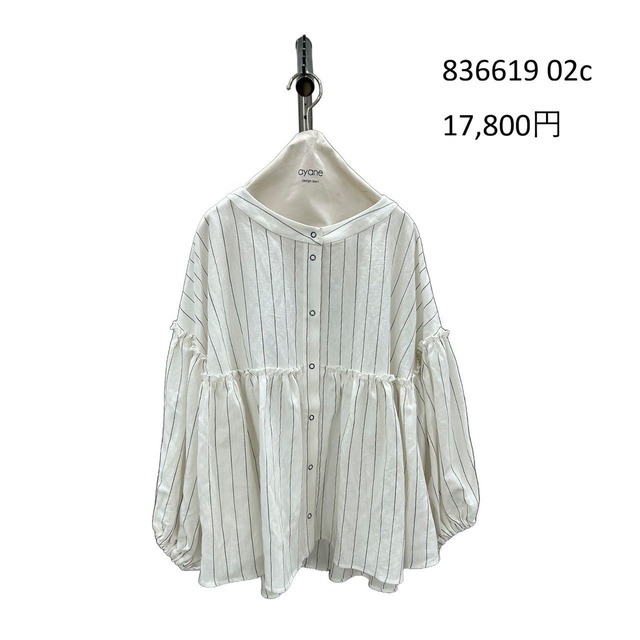 26md ayane ピンストライプボリュームスリーブシャツ【836619】