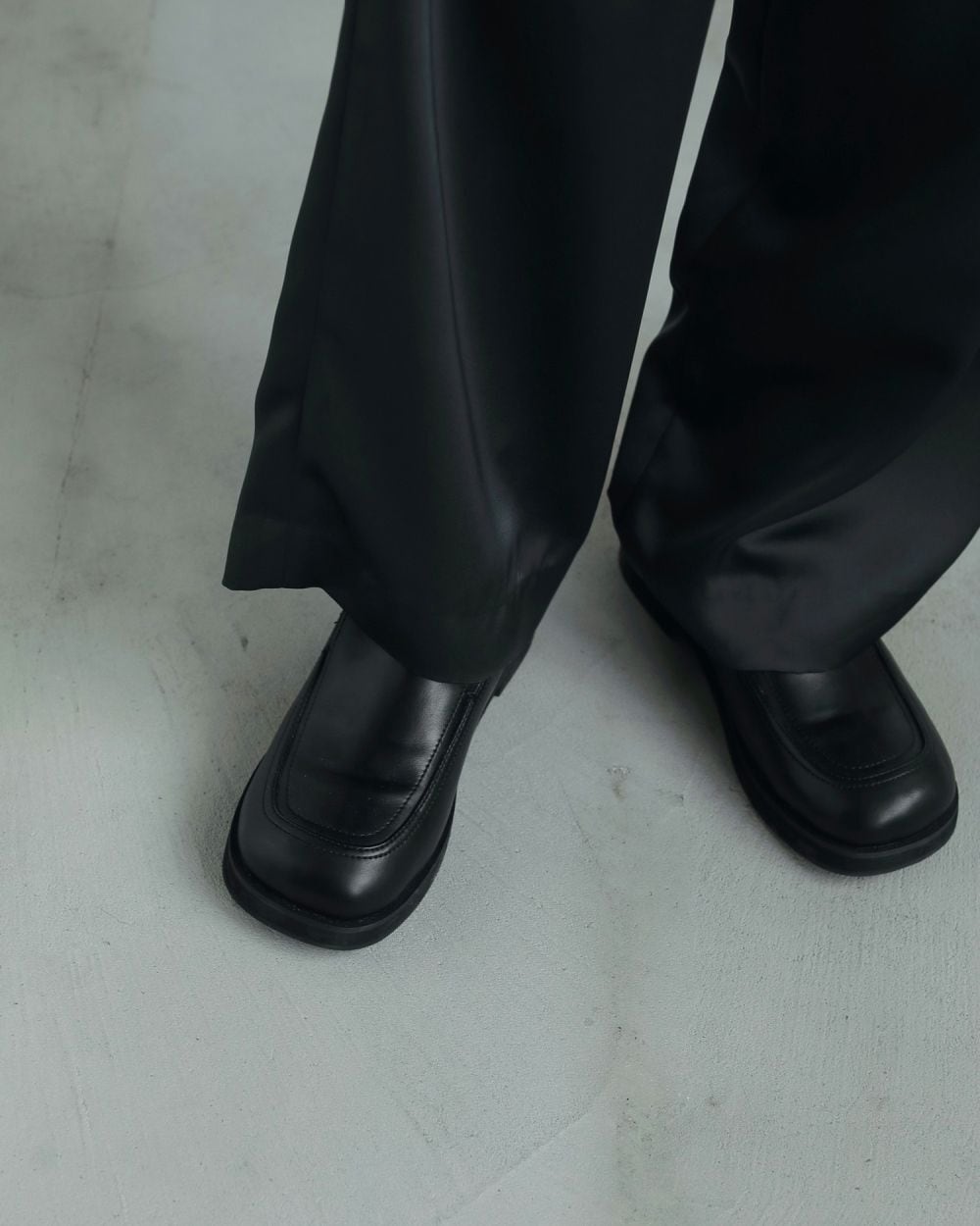 少しラウンドさせたトゥラインと程良いボリューム感がポイントのエコレザーローファー。シンプルな中に、さりげなくステッチを効かせたフロントデザインがポイント。ボリュームがあり、歩きやすい低めのヒール。カジュアルにも綺麗目にも幅広く合わせやすいです。スカートやワンピーススタイルに靴下と合わせたコーディネートももおすすめです。