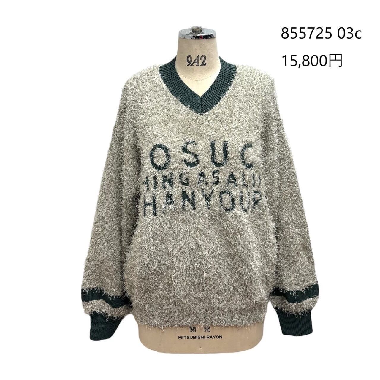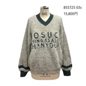 フリンジのような糸を使用したキュートな印象のニットです。太い糸でロゴを入れることで、2種類の糸の違いがとてもはっきりとして コントラストの効いた技ありニットになりました。855726のベストもおすすめです。