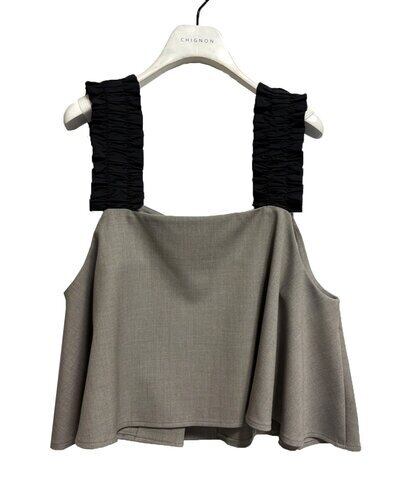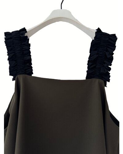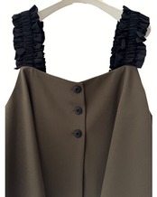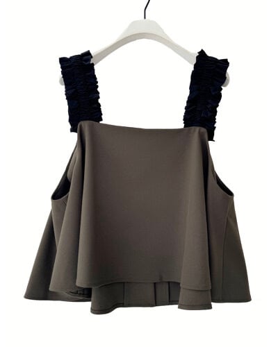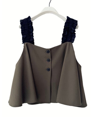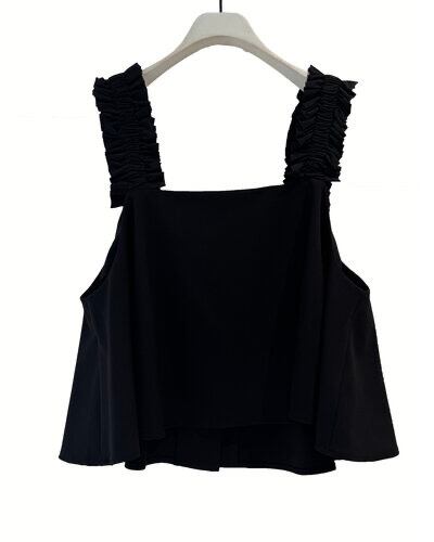 肩のフリルギャザーがポイントのフレアシルエットのキャミベスト。