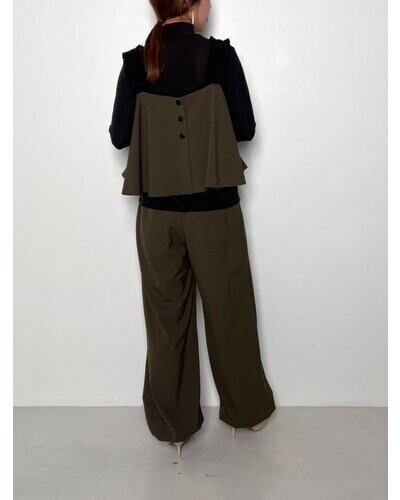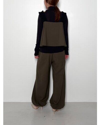 前後2WAYで着用でき、パンツとのセットアップのスタイリングもおすすめです。