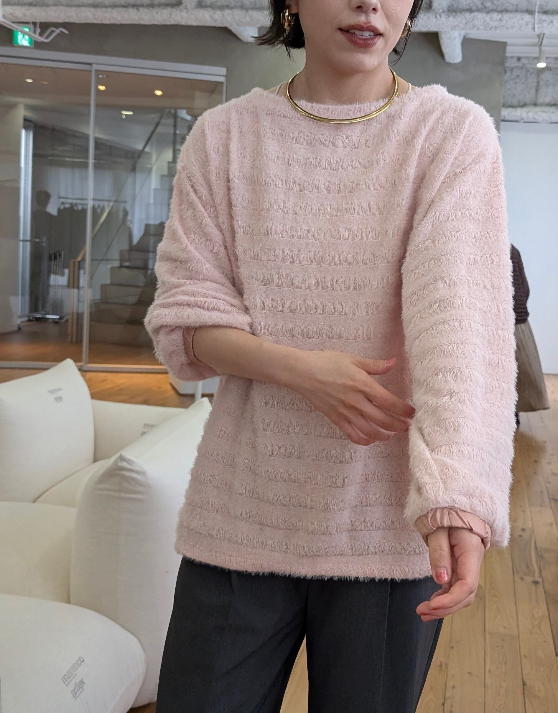 ボーダー見えの表面感のあるニットソーが特徴のPOです。