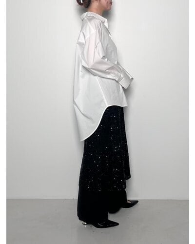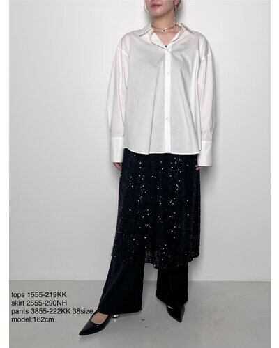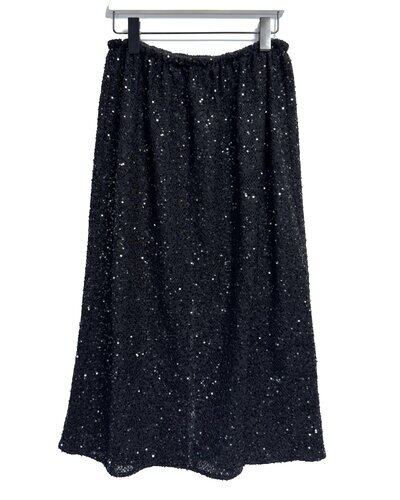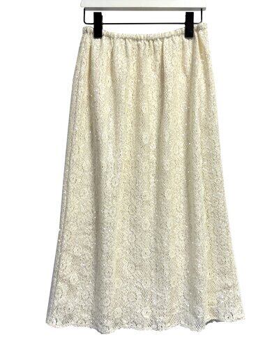 レース素材にスパンコールをちりばめた、素材が特徴的なミディスカート。