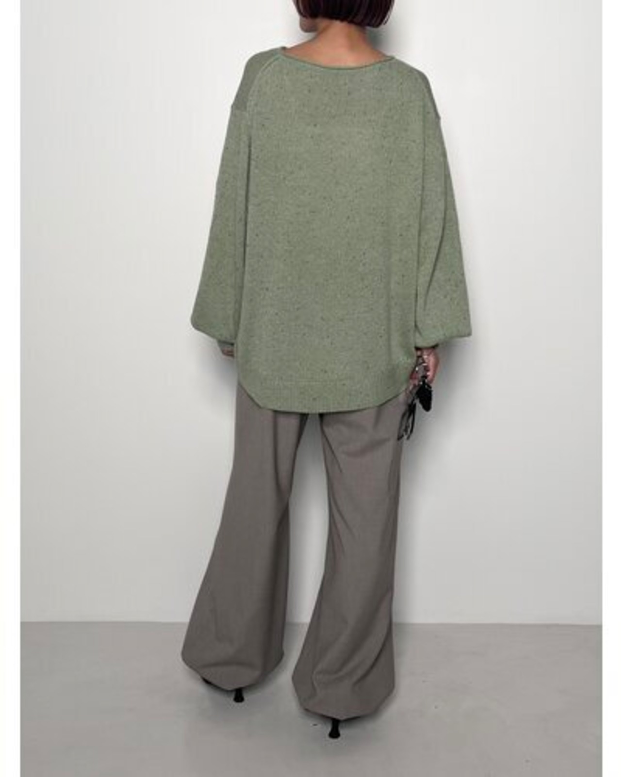 ネップのラメをミックスしていて、シンプルながらも表情感がひとクセあるアイテムになっています。