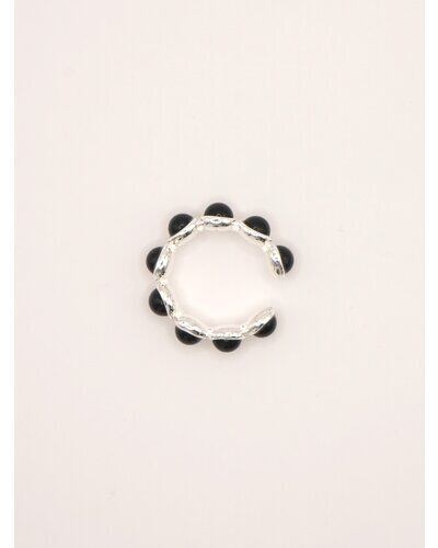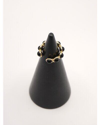 艶感のあるブラックオニキスを贅沢にあしらい、ニュアンス感とモード感が漂うリングは、オニキスが乗った有機的なフォルムが9粒連なり存在感抜群のリングは程良いボリューム感があるので着けるだけで手元にアクセントをプラスしてくれます。リングは開きがある方を表にしても◎単品でつけるのはもちちろん、お手持ちもリングとレイヤー使いしても◎9粒リングはフリーリングではありませんので無理に広げると石が取れる可能性がありますのでご注意ください。TOP付リング内側に「CHIGNON」刻印入り。