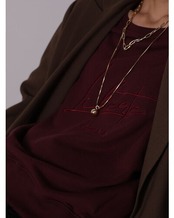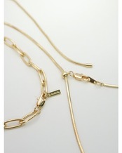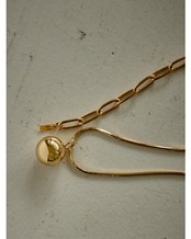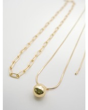 程良いボリューム感と抜け感のあるオーバルチェーン&取り外し可能なメタルボールが付いたスネークチェーンの2本セットネックレスはどんなコーデにも合わせやすく、それぞれサイズ調整も可能な万能アイテムとなっております。オーバルチェーンはお好きな位置で留められるのでショートやY字にしても◎メタルボールは取り外し可能で、スネークチェーンにスライドビーズがついているので着用しながらの長さ調節が可能です。2本重ねて着けたり、単体でつけたりと様々な着け方を愉しめます。メタルボール裏面に「CHIGNON」刻印入り。