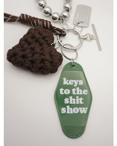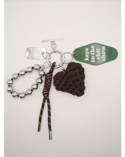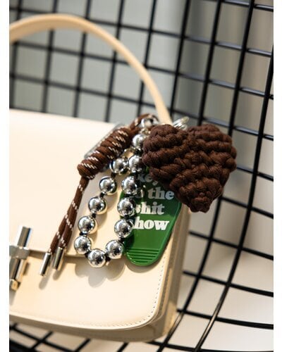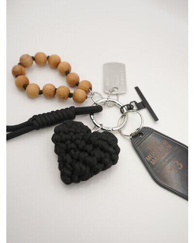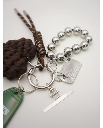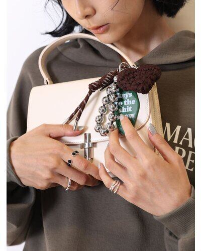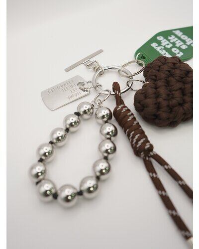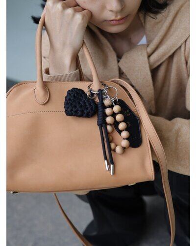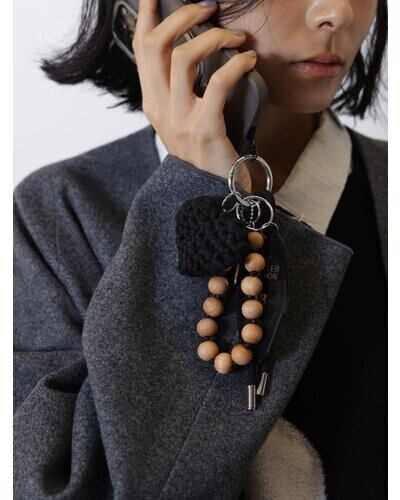 異素材ミックスが可愛いマルチに使える遊び心たっぷりの欲張りキーホルダーは、バッグチャームやスマホストラップ、キーリングとしてご使用頂けます。存在感のある太めコード、手編みハート、ドッグタグ、モーテルキー風キーホルダー、それぞれのパーツはすべて取り外し可能なので、その日の気分やシーンに合わせてカスタムして自由にアレンジができます。また、丸玉のウッドビーズ又はメタルビーズは手を通すことができるのでスマホストラップとして手持ちしやすく&落下防止に◎スマホとケースの間に挟むだけのストラップホルダーは金属製の為、こすれるとスマホ裏面に傷がつく場合がございます。また、編みハートはハンドメイドパーツの為個体差が生じますので予めご了承ください。