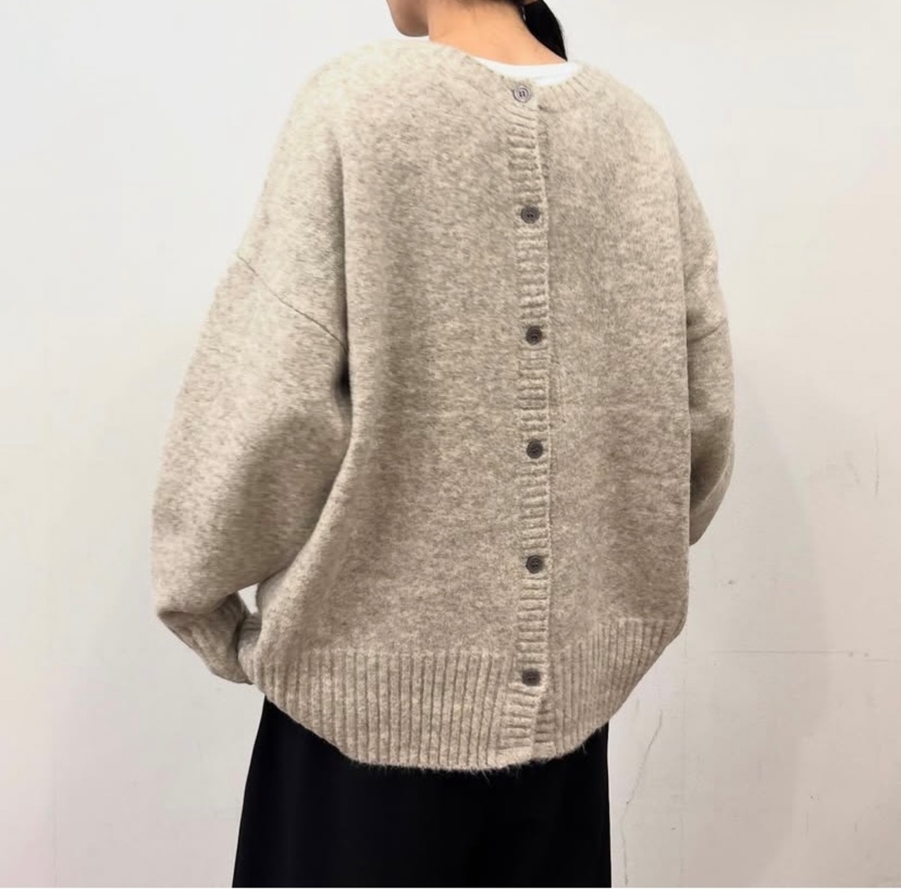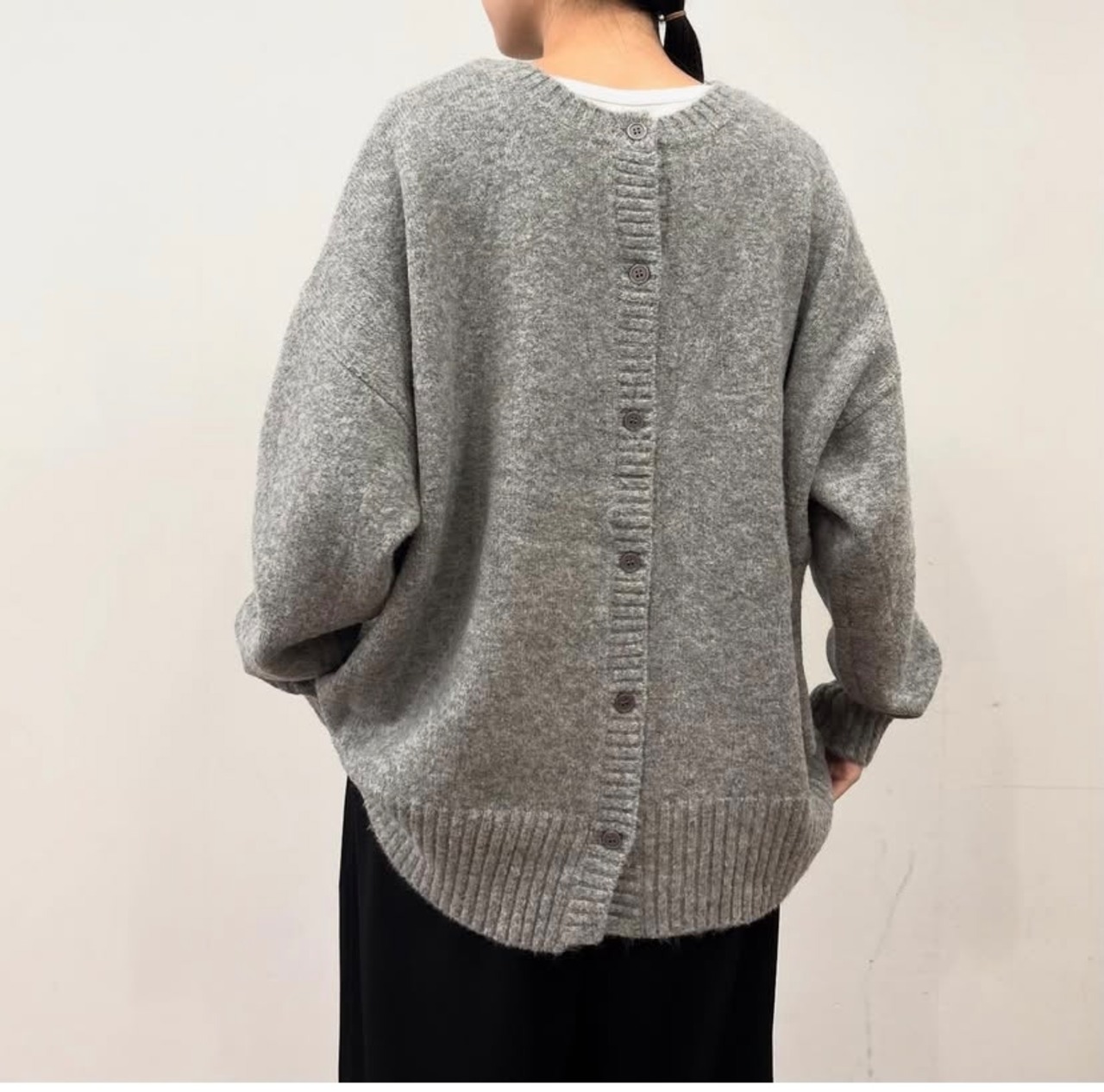 スタイルを選ばないゆるっとオーバーサイズなサイズ感が特徴のインターシャロゴニット。 首元は少しゆったりしたデザインなので顔周りがすっきり見えして、オーバーサイズなので ボディラインを拾わず体型カバーができます。 前後2WAY着用可能なので、ロゴを後ろ着用して羽織りで着ても良し、 ロゴを前で着用してボタンあきが後ろに着てもおしゃれに着こなせます。