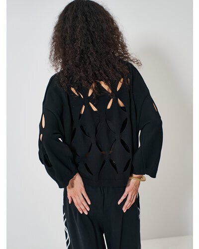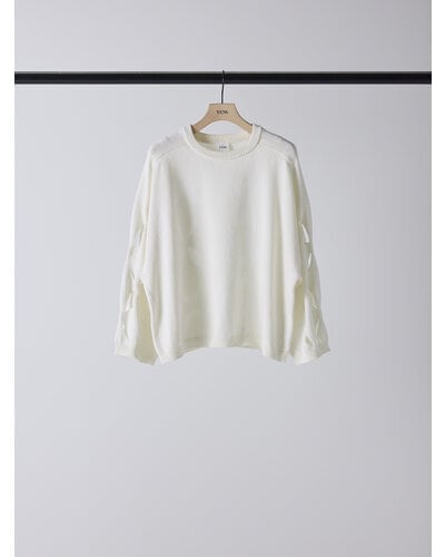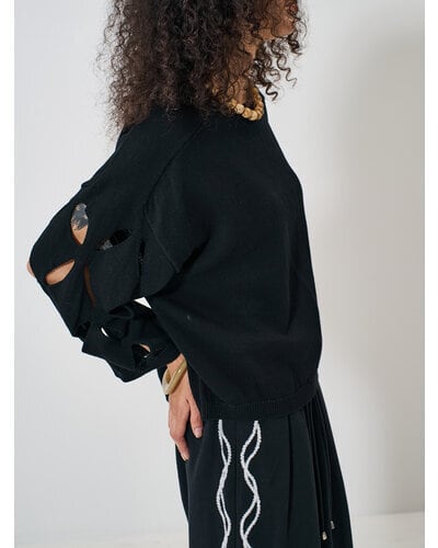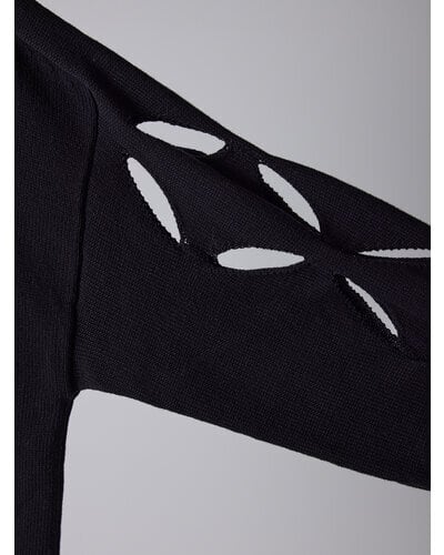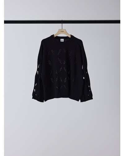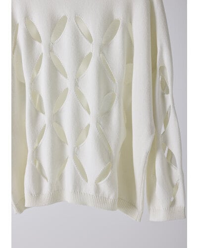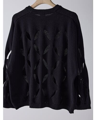 大胆にくり抜いたアイレット柄が特徴のニットトップスです。