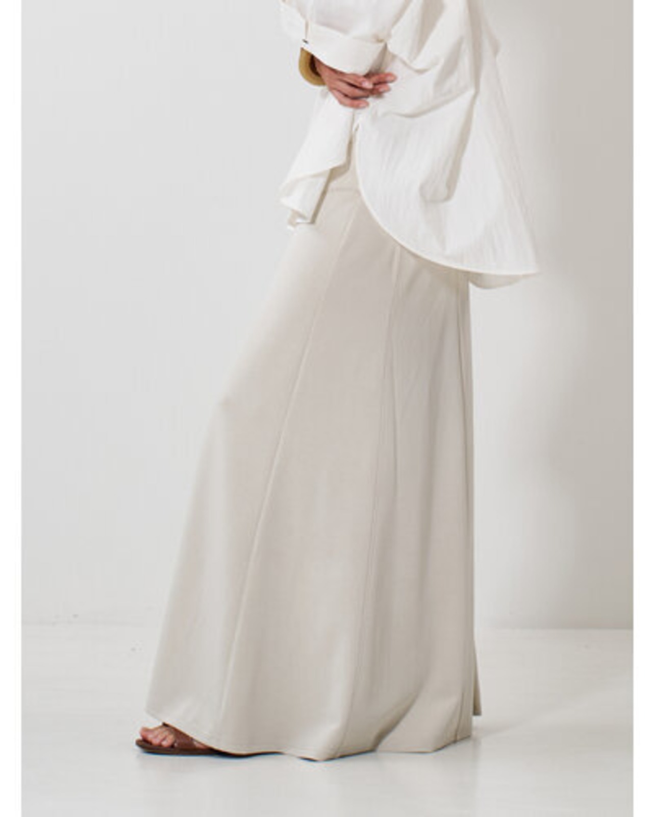 ヒップ下辺りから展開して自然に広がるフレアシルエットのスカートは、生地にマッチした美しいドレープを生み出します。