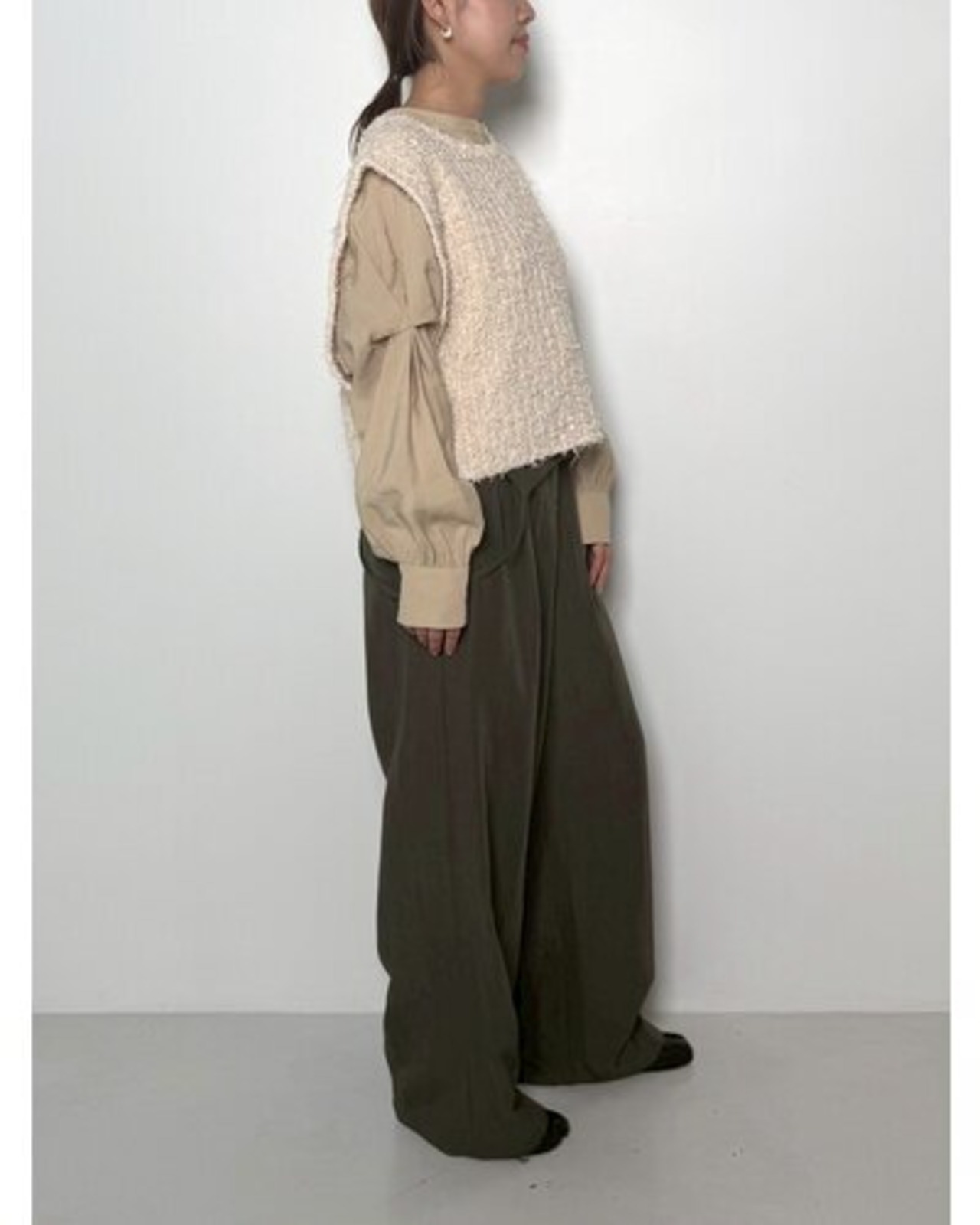 ブラウスはもちろん、カットソーにも重ね着しやすく、 シンプルなお洋服もこのベストを着るだけでコーディネートのポイントになってくれます。