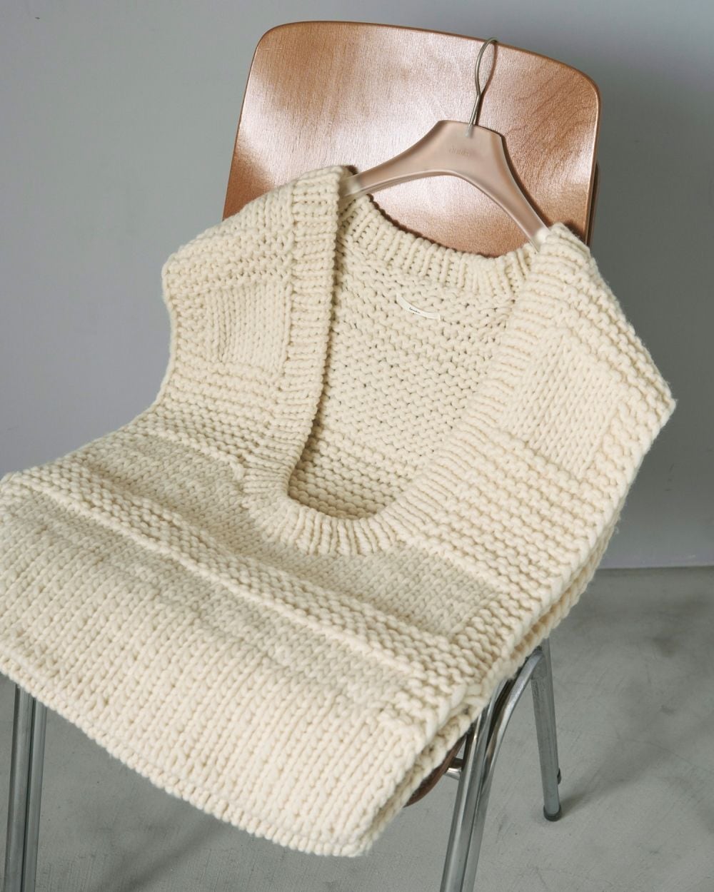 ペルーでひとつひとつハンドで編み上げたオーバーベスト。深めのUネックデザインで様々なアイテムとのレイヤードを楽しんでいただける一枚。手編みならではのざっくりとした編み地と柔らかな風合い、ふくらみのある糸使いがポイント。ウール100%糸で、軽くて暖かな着心地も魅力。