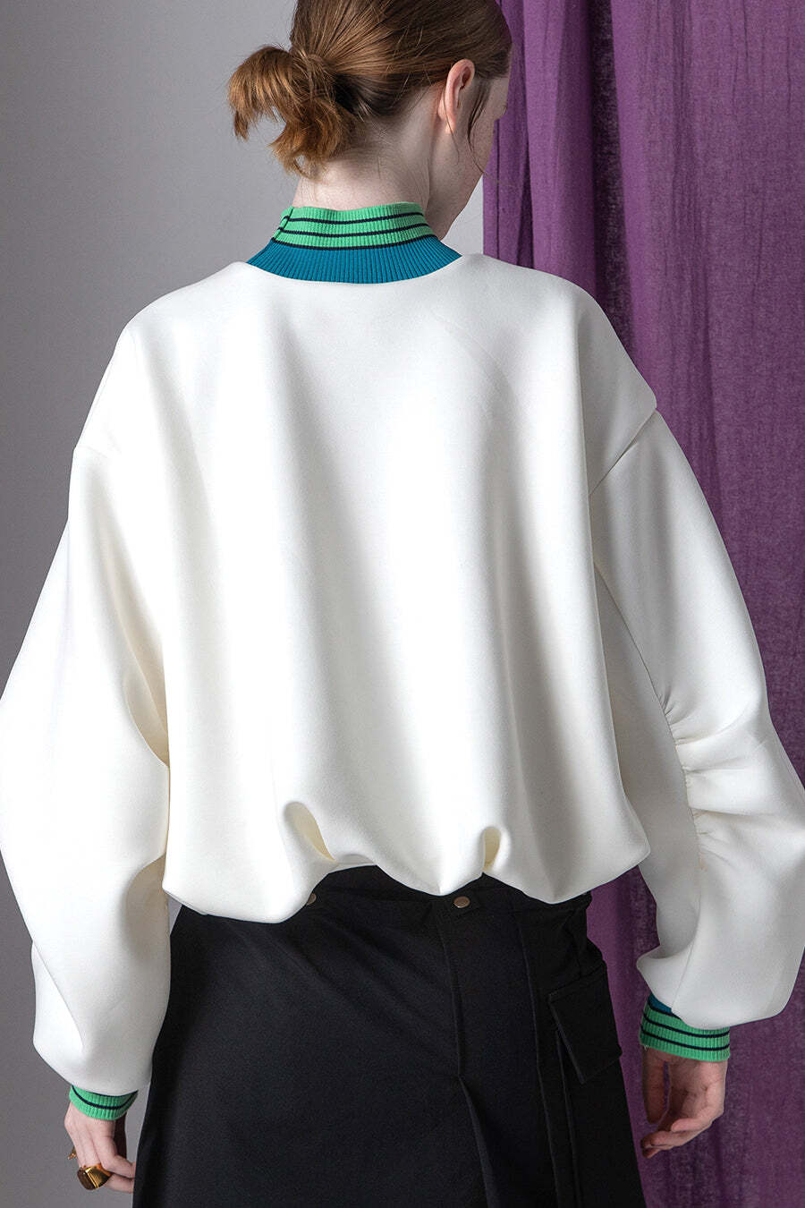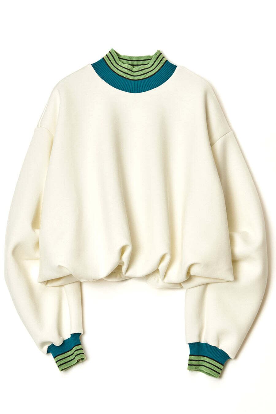 マルチカラーボーダーがアクセントのバルーンプルオーバー。