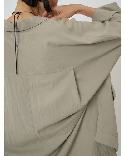 なめらかなとろみ感が心地良い、シャンブレーのレーヨンナイロン素材を使用したドルマンスリーブジャケット。