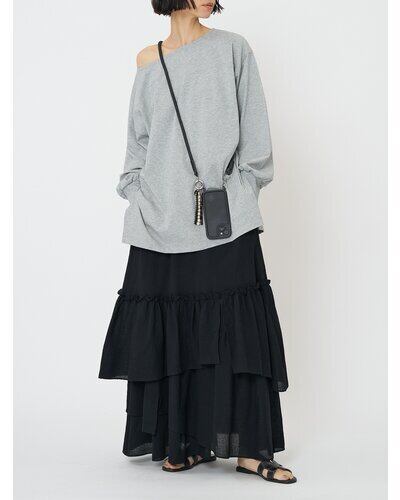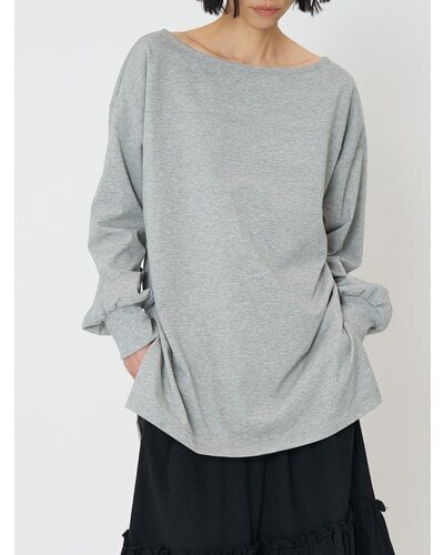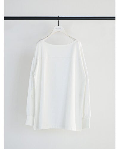 カジュアル過ぎないクリアな表面感の度詰天竺を使用した、大人の女性らしさを演出する抜け感あるロンTです。