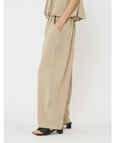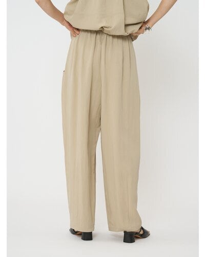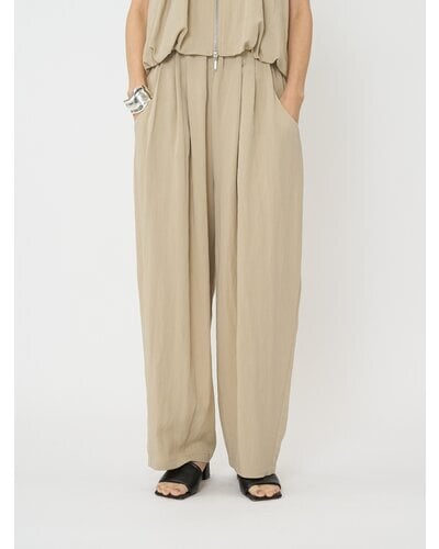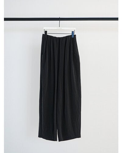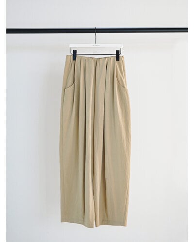 ゴムを内側に配し、ウェストをタックでまとめているので、カジュアル過ぎずきれいめに着こなせる1本。