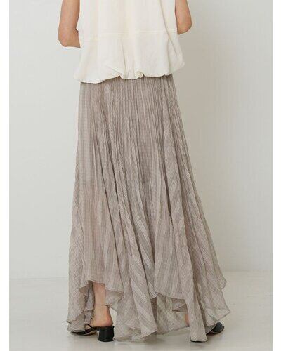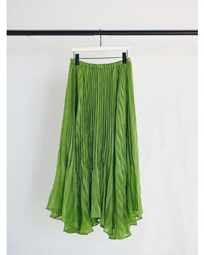 ウエストから入った繊細なプリーツは、裾に向かって自然に消えていくデザインで歩くたびにふわりと広がるシルエットが、シアー素材の魅力を引き立てます。