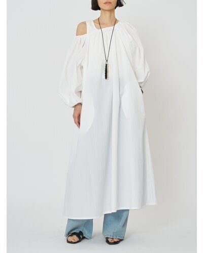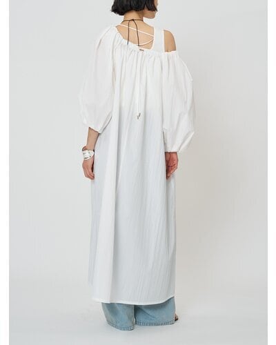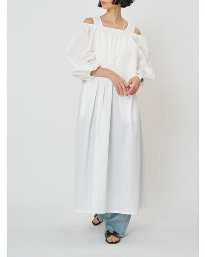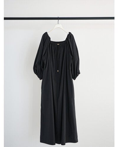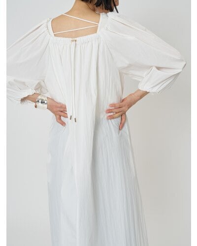 広く開いた衿ぐりがデコルテをすっきりと見せてくれる、リラクシーな大人ワンピース。