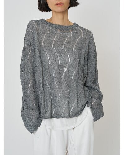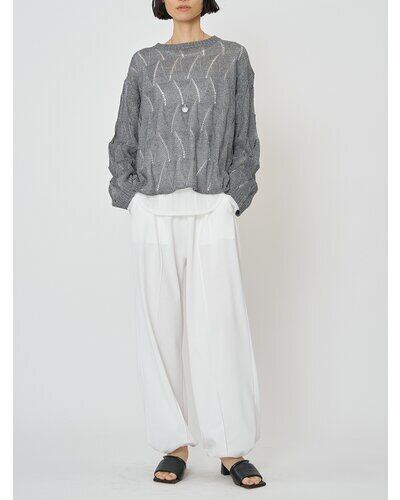 ペーパータッチなポリエステル糸を使用した、スカシ柄入りプルオーバー。
