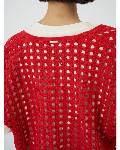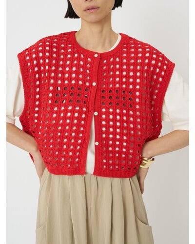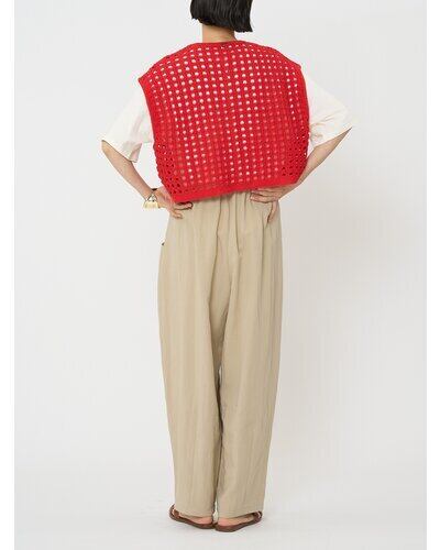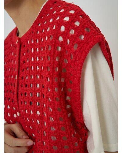 大きいメッシュ編みが可愛い、ボックスシルエットニットベスト。