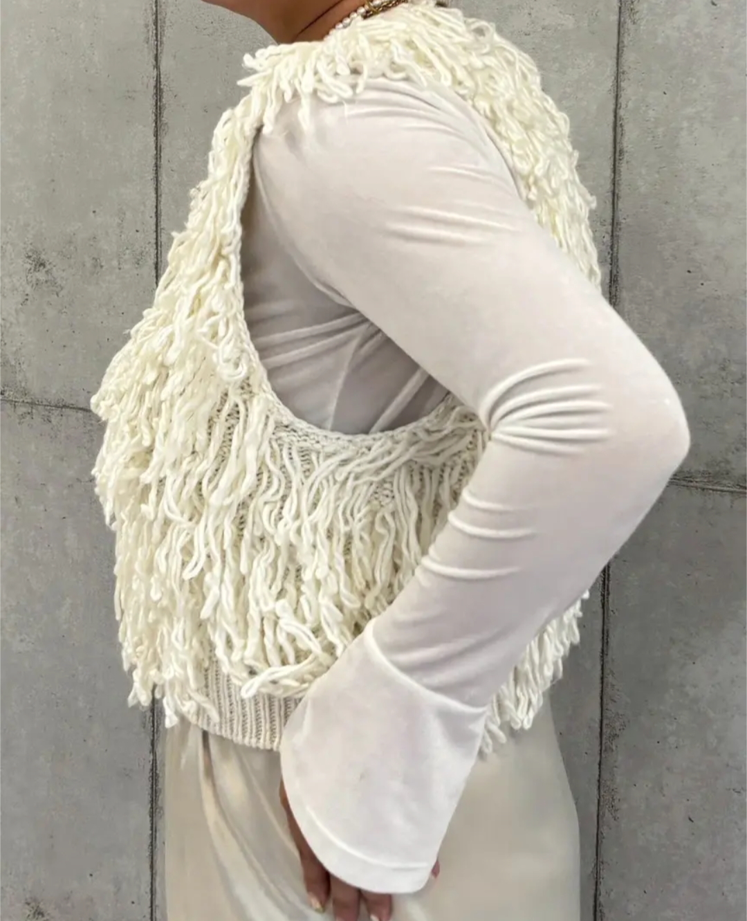 立体感のあるループ編みが目を惹くニットベスト。