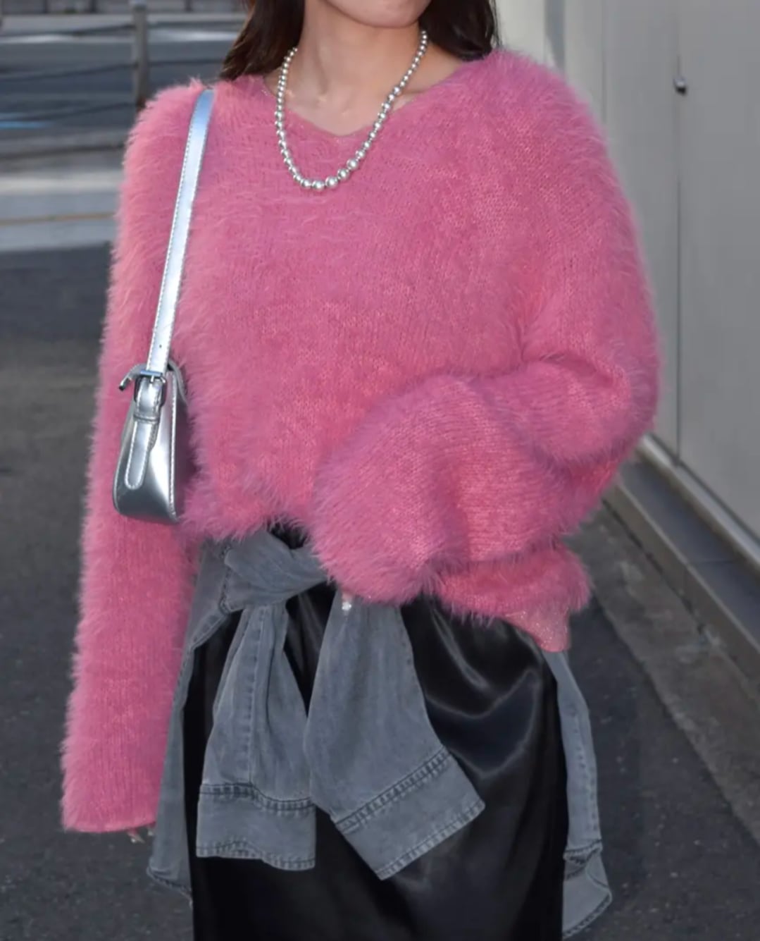 あたたかく優しい肌触りのシャギーが魅力です。ほんのり光を反射するラメが華やかさをプラスし、顔まわりを明るく見せてくれます。程よく開いたVネックが抜け感を演出し、ふわっとしたシルエットながらもすっきりとした印象に。