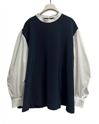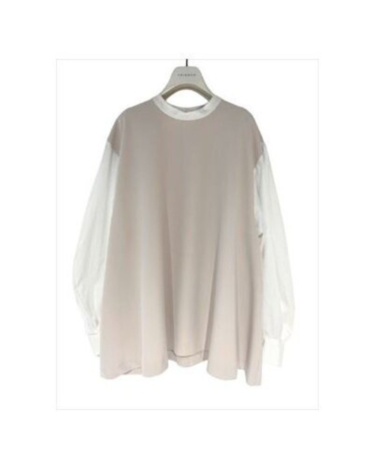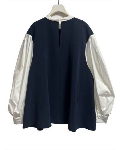 ボディ部分はすっきりと上品に、ホワイトの袖はふんわりとしたボリュームシルエットで、メリハリのあるスタイルを演出します。