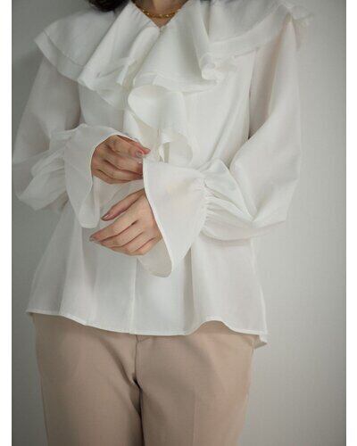 トレンドのラッフルカラーは2枚重ねてたっぷりとボリュームを持たせました。