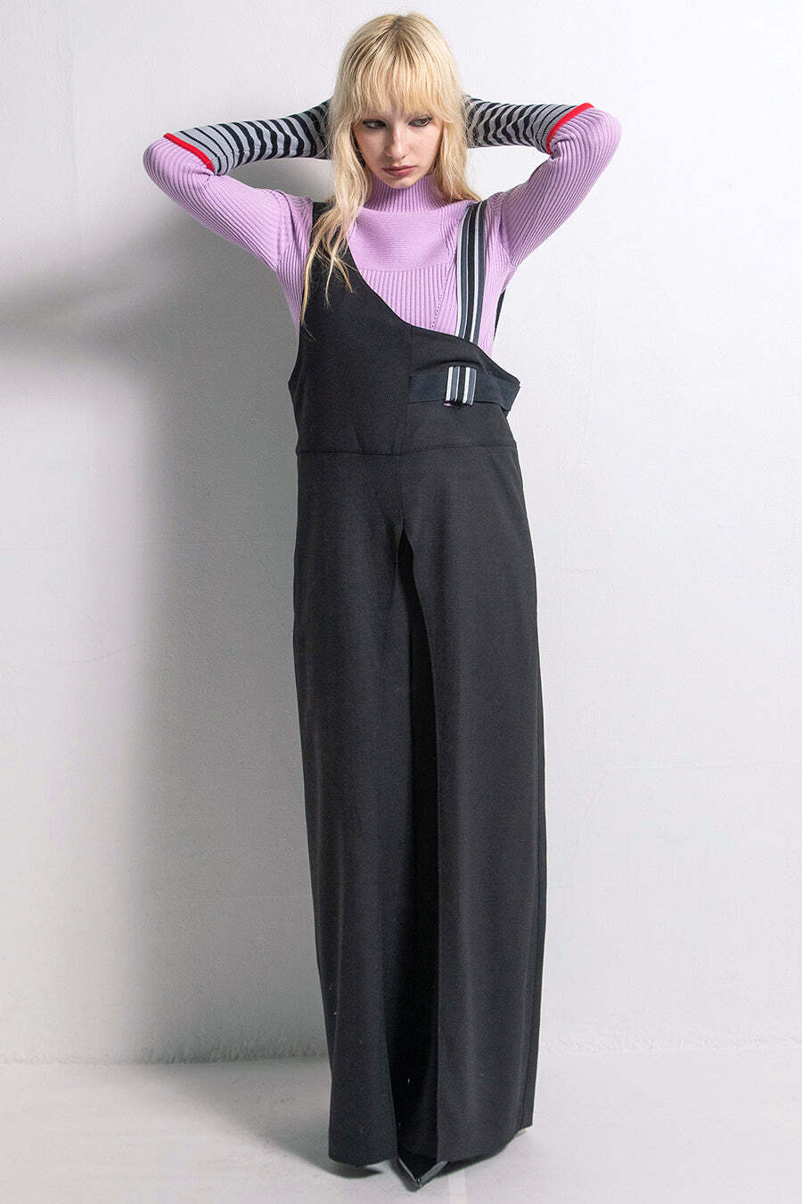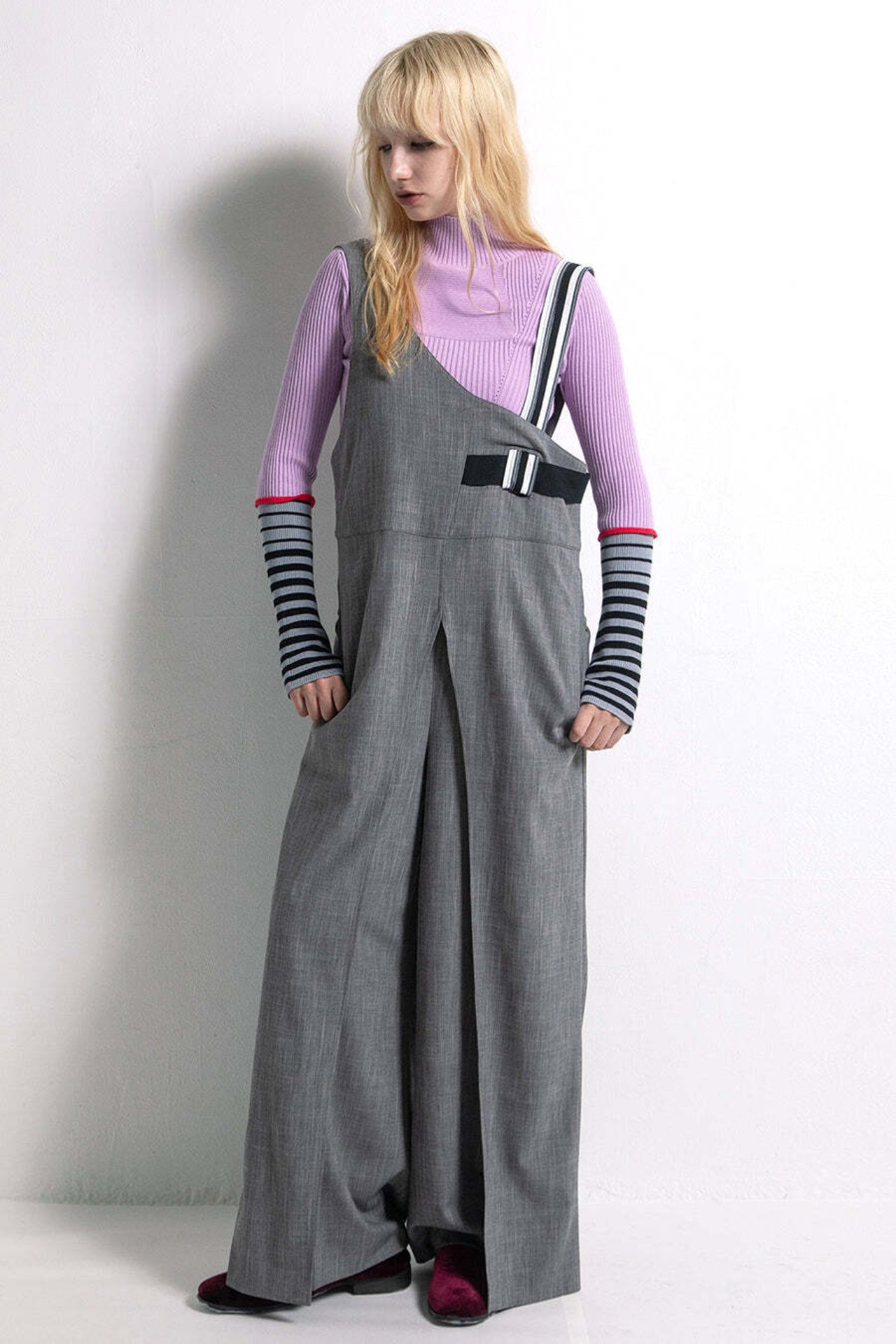 パンツ部分は、前身頃にスカートを重ねたような斬新なレイヤードデザイン。