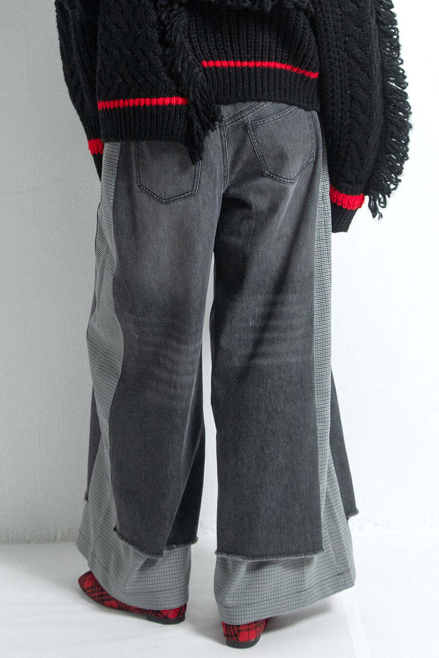ハウンドトゥースチェックの上に、あえてデニムを叩きつけたようなユニークデザイン。