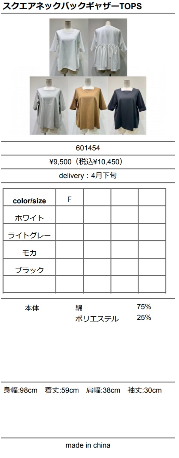 CYANtokyo スクエアネックバックギャザートップス【601454】