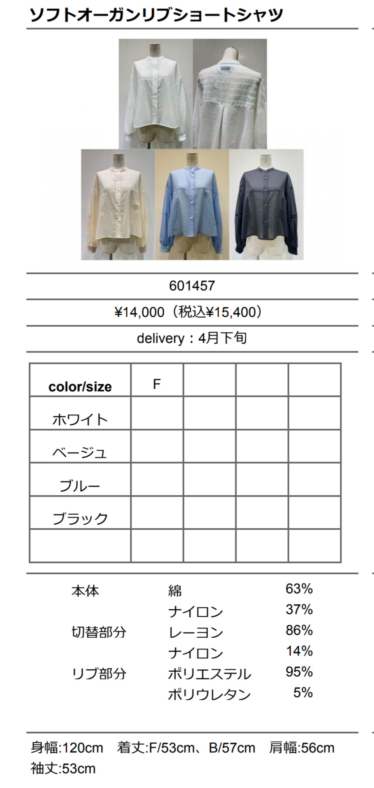CYANtokyo ソフトオーガンリブショートシャツ【601457】