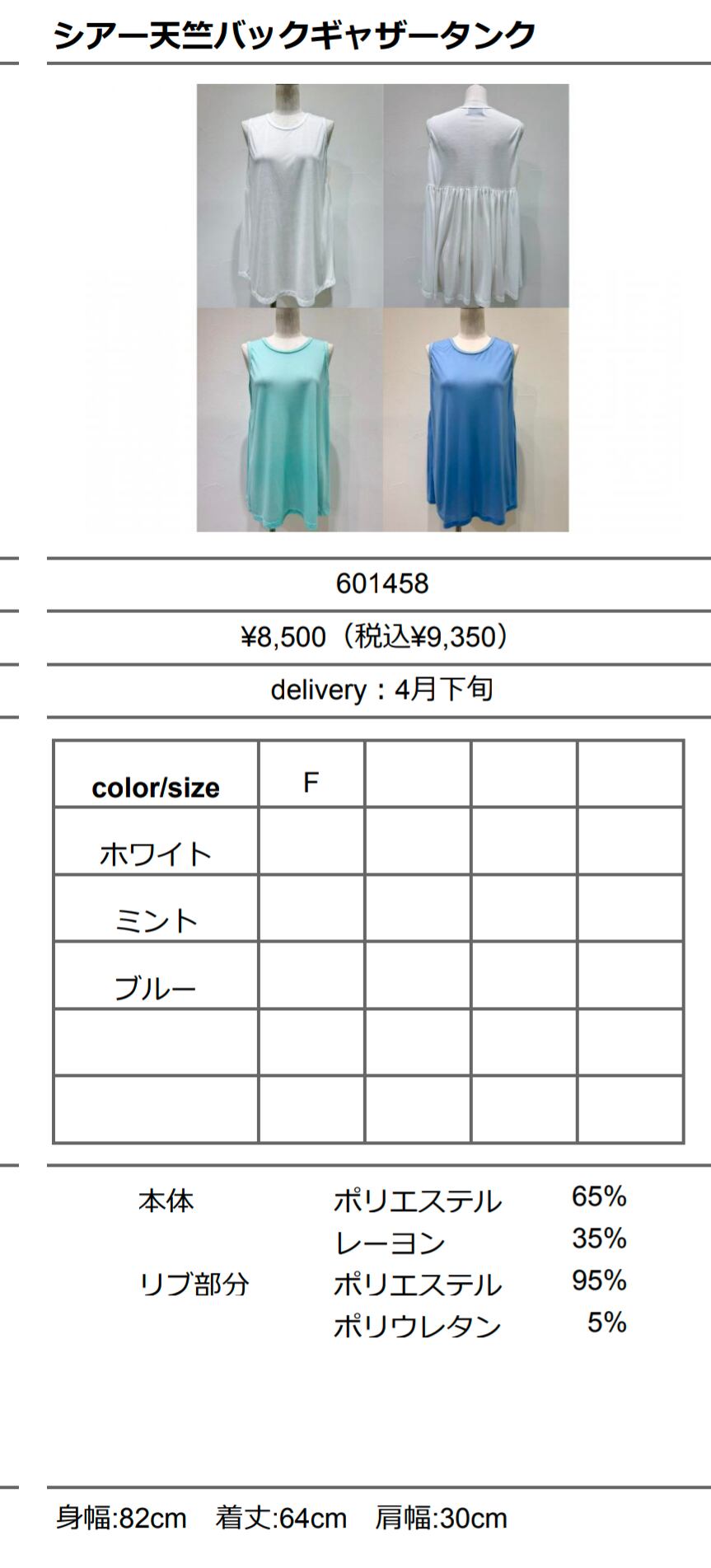 CYANtokyo シアー天竺バックギャザータンク【601458】