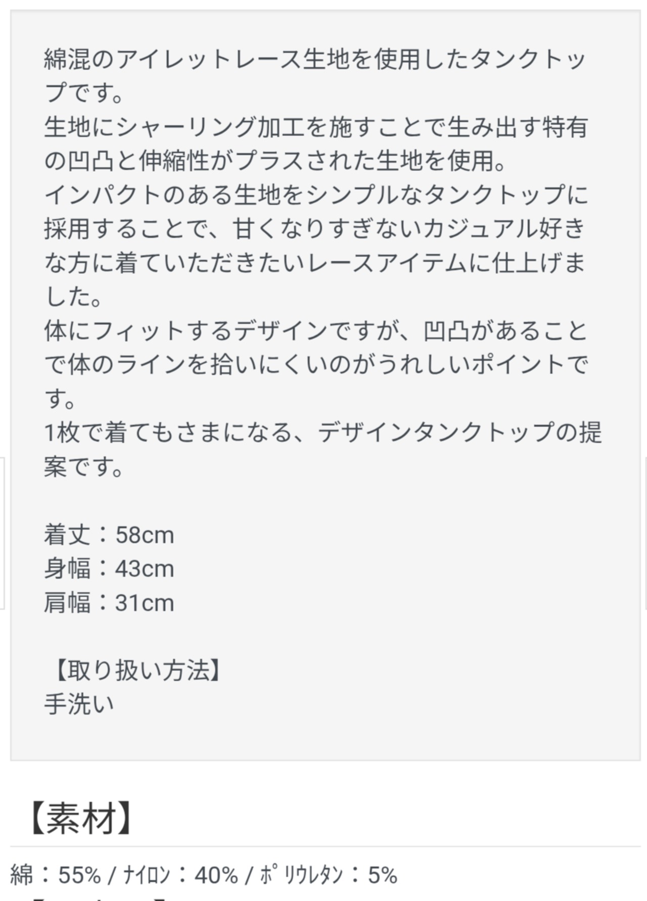 YENN Y262-81053] SHRUNK LACE TANKTOP