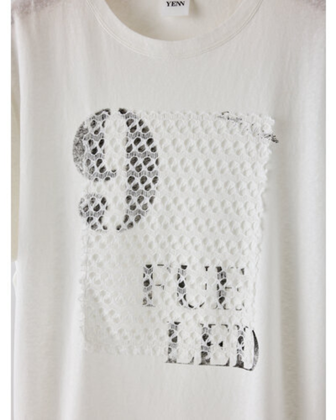 YENN Y262-81057] LACE FRAME LOGO TEE