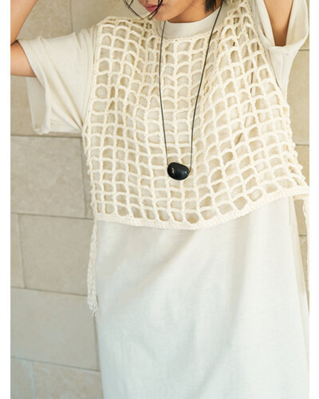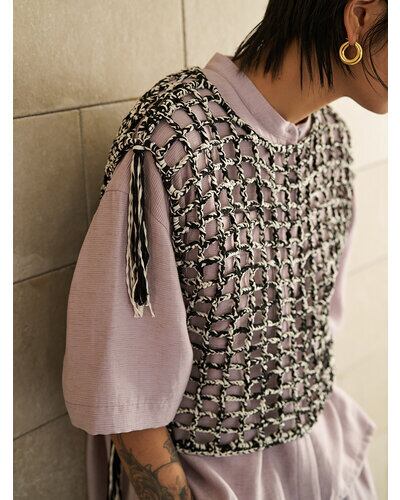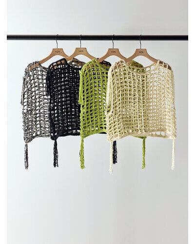 YENN Y262-91059] CROCHET MESH TOPS