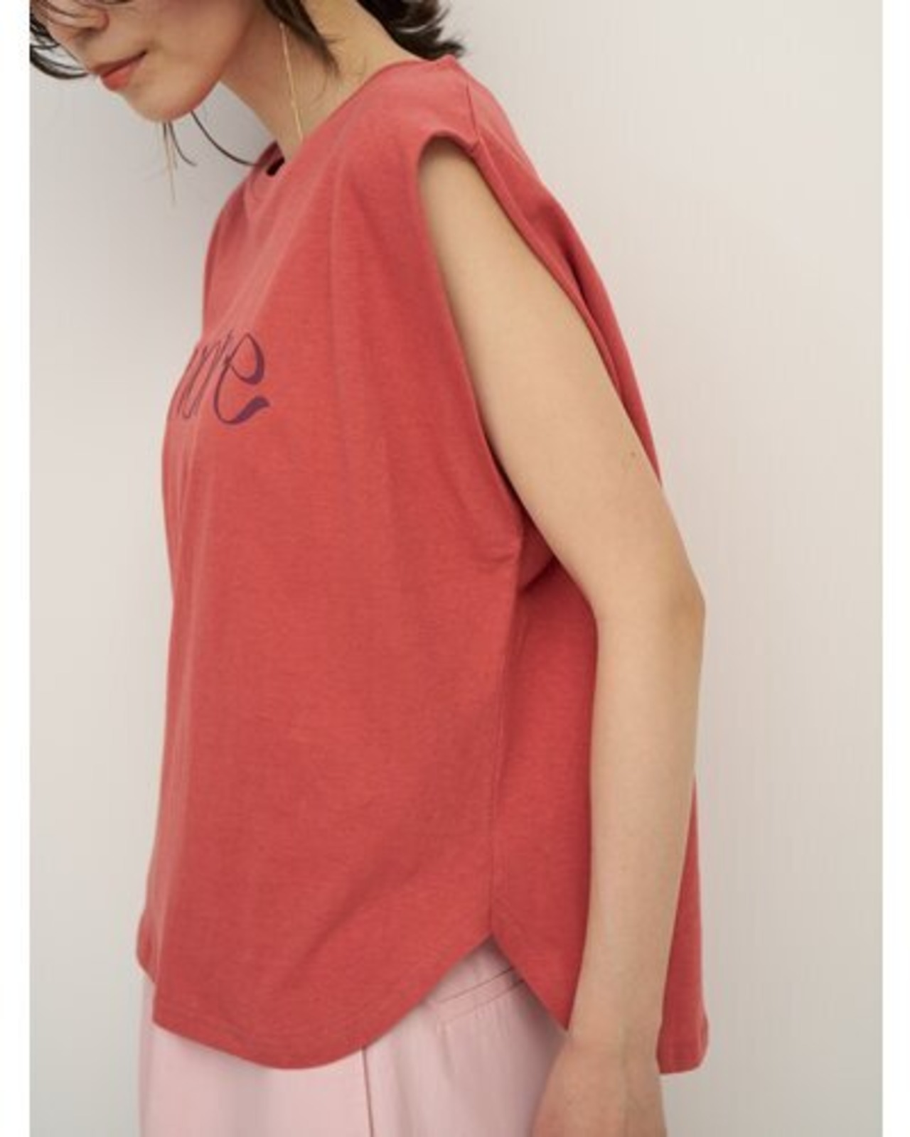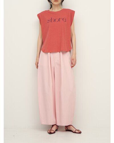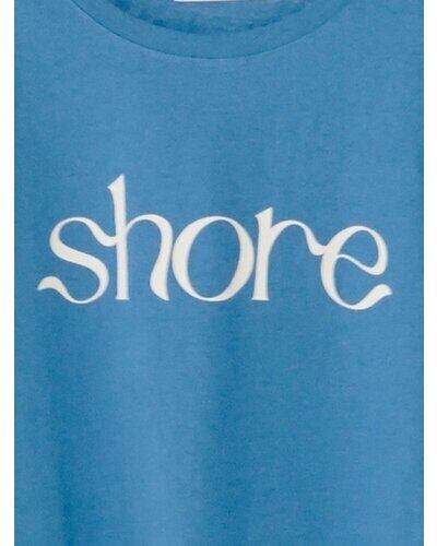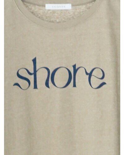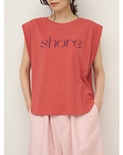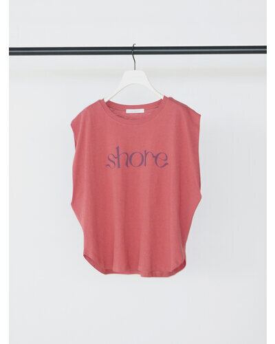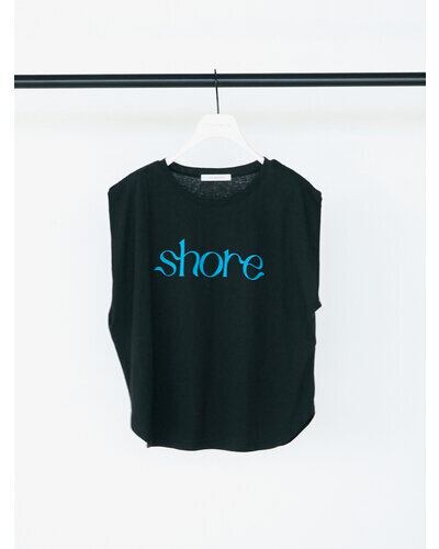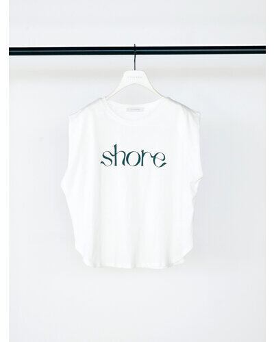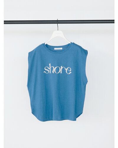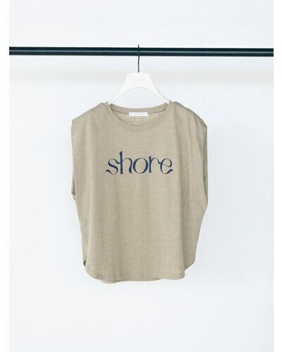 綿麻の夏らしいドライタッチな生地をセレクトしたコンパクトシルエットのフレンチスリーブT。フロントに流れるようなロゴ”SHORE”(海辺)をプリントし女性らしいプリントTに仕上がりました。シンプルながらもスタイリングのアクセントになる、1枚で着映えするデザイン。