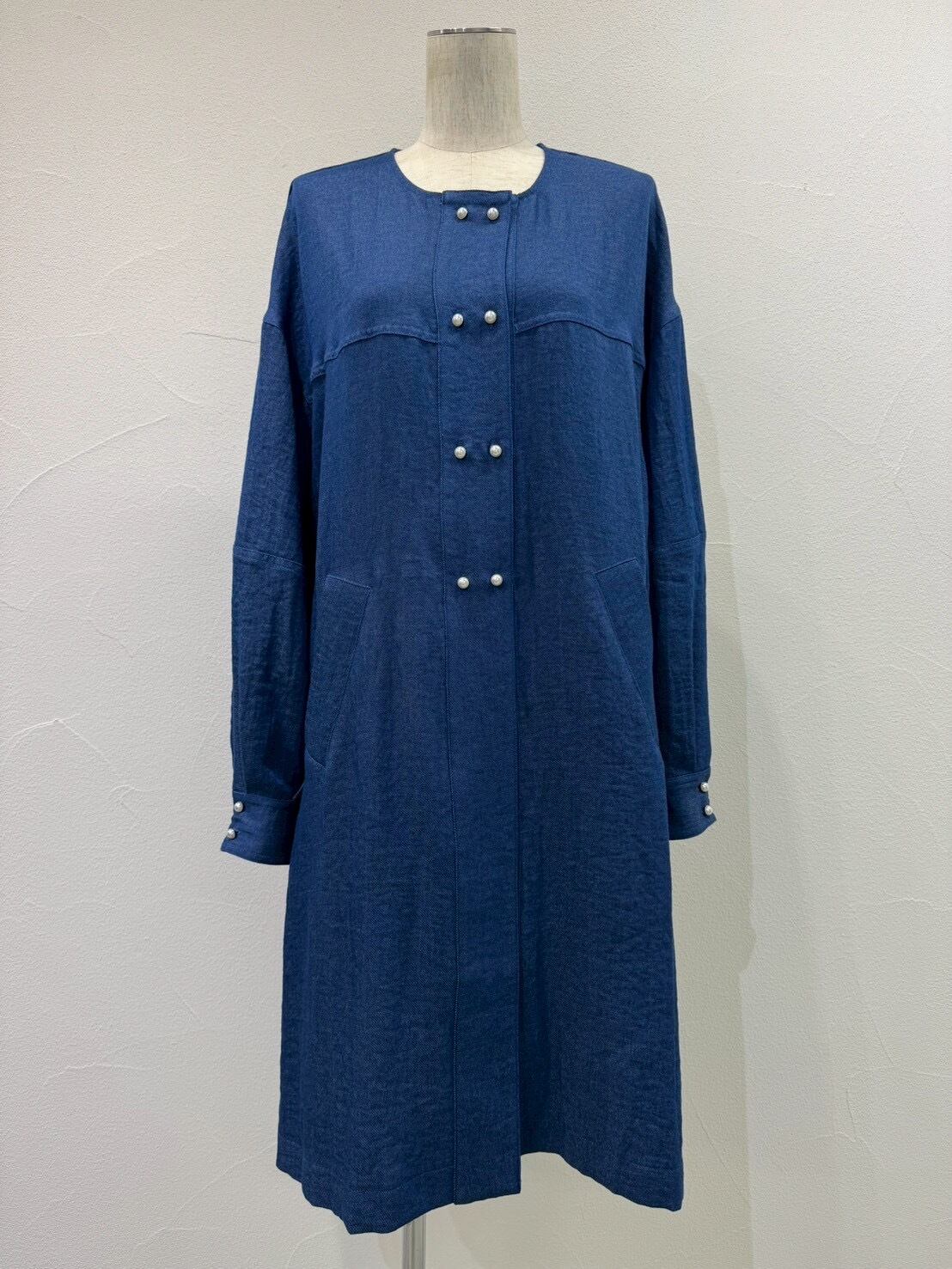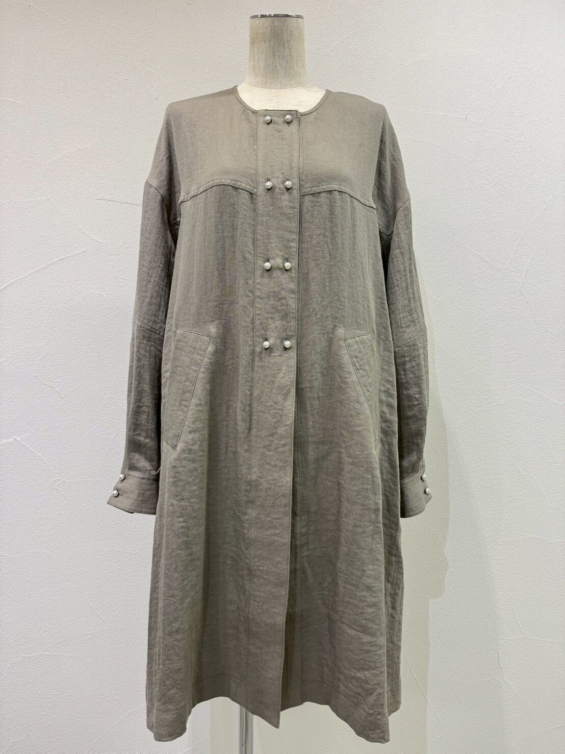 cyan 610428 パールボタンミリタリーリネンコート