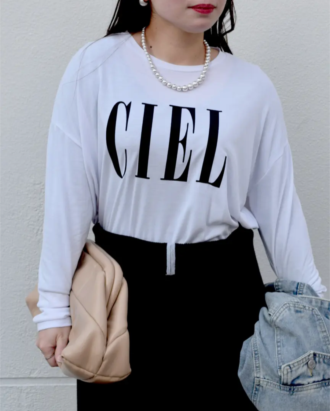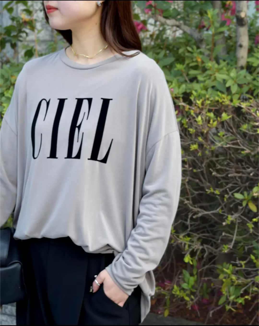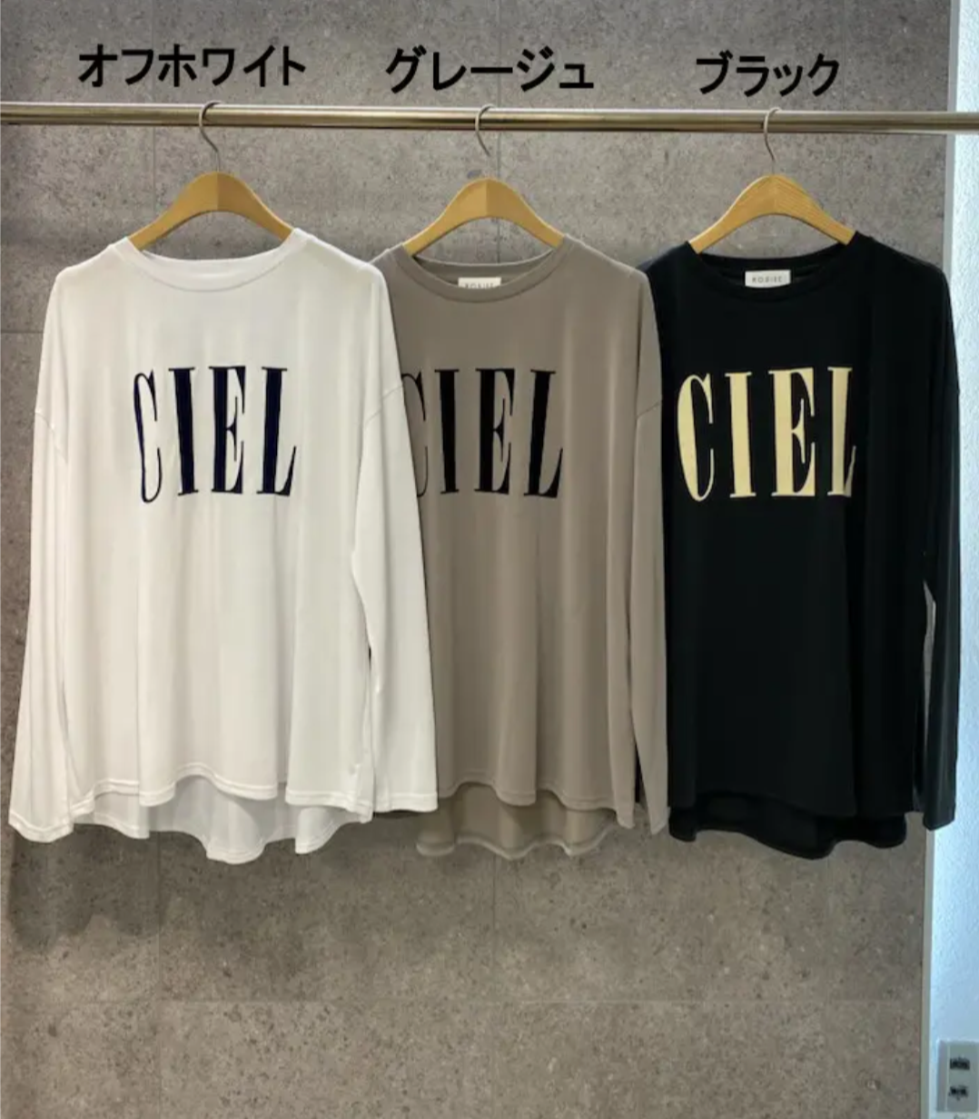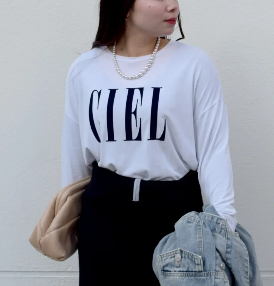今回はフロントに「CIEL」のロゴプリントを施し、シンプルながらも存在感のあるデザインに。1枚でも、レイヤードスタイルでも活躍する万能トップスです!!
