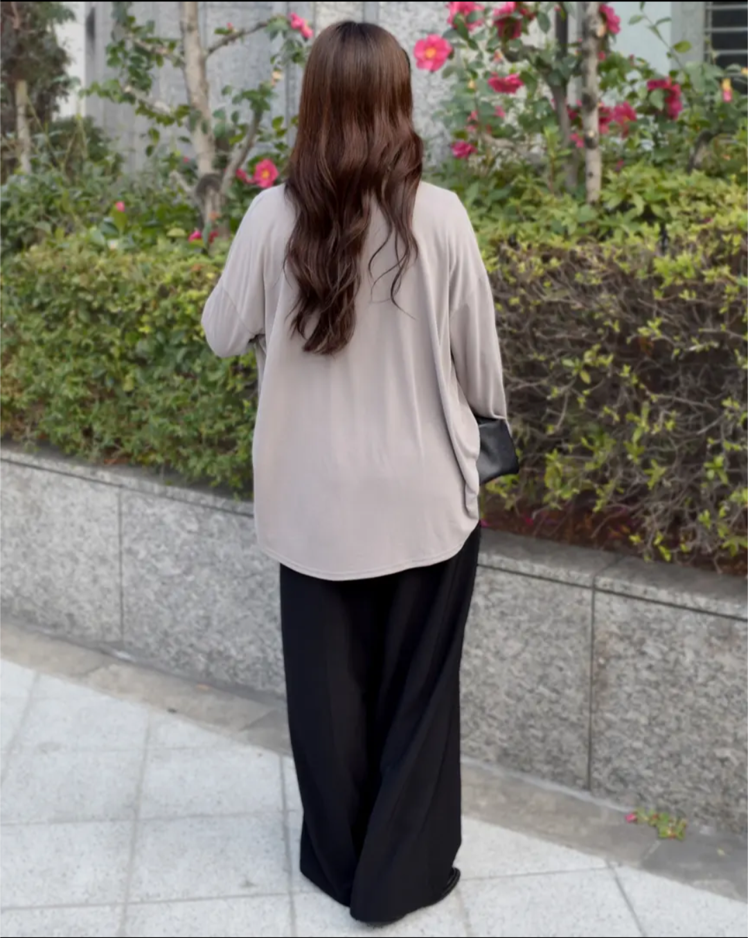 柔らかな素材なのでジャケットやアウターの中に着てもごわつくことなく、ロングシーズン活躍します。カジュアルにもキレイ目にも振れる1枚なので、デイリーコーデにもさっと取り入れていただきたいです!