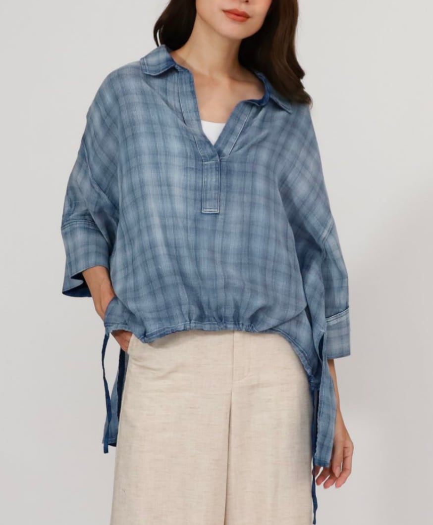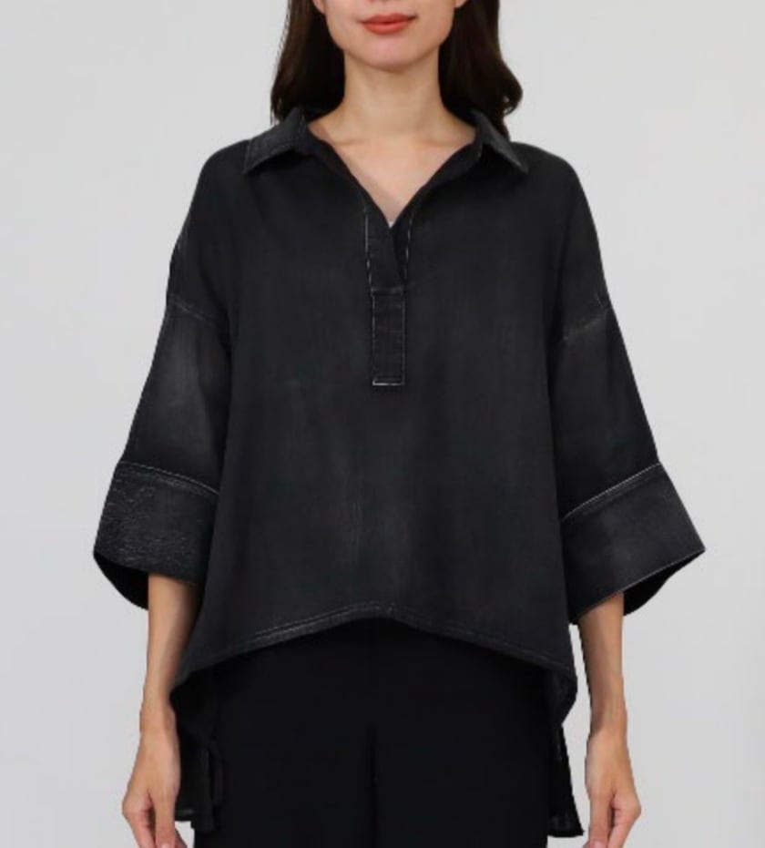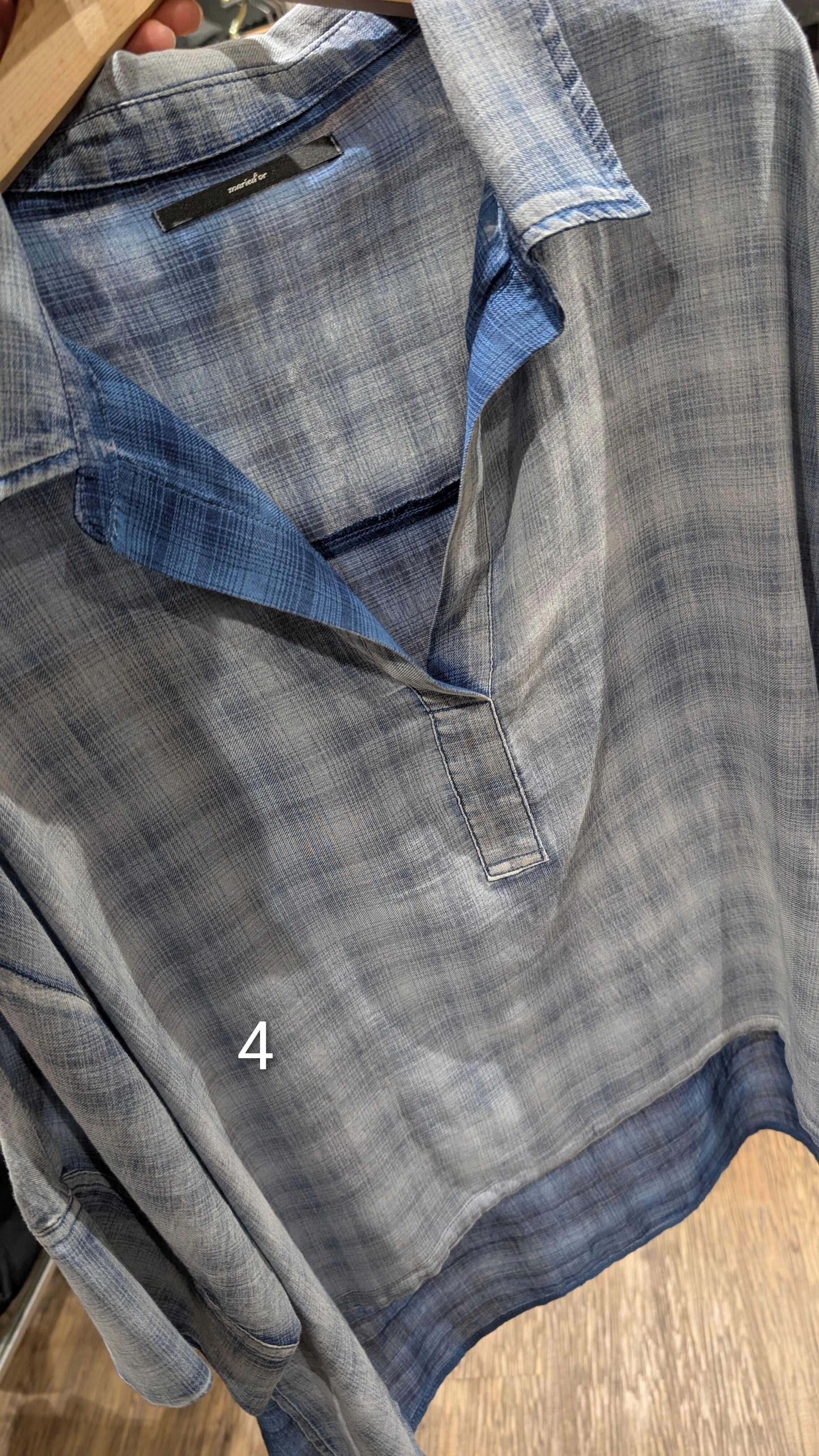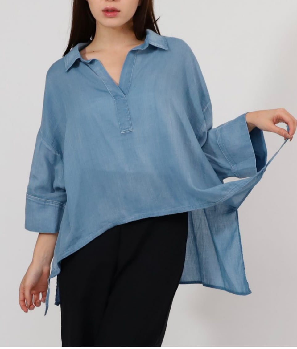 MARIED'OR 2ozシアーデニムスキッパー衿 前しぼり五分袖シャツ【45261】