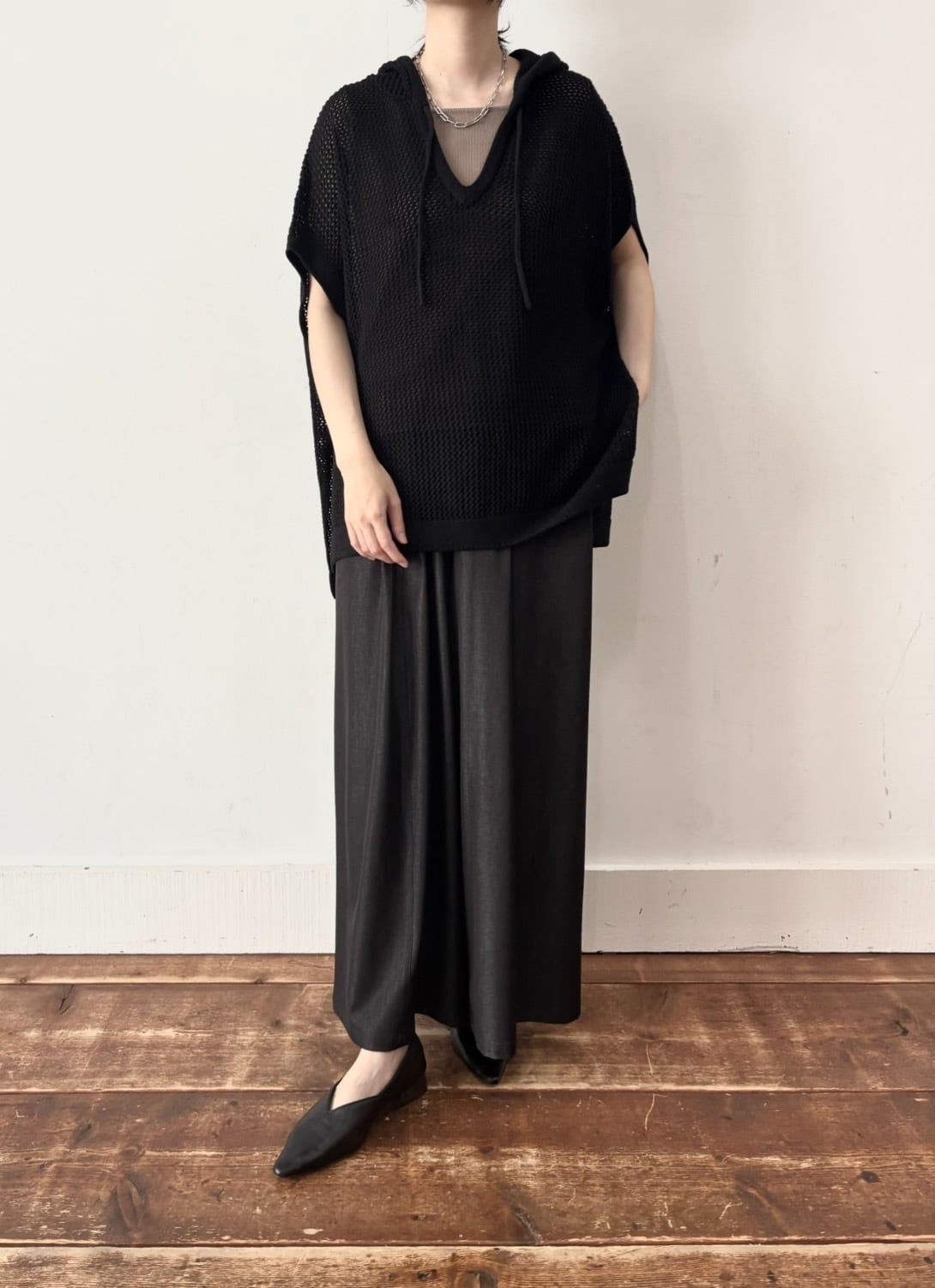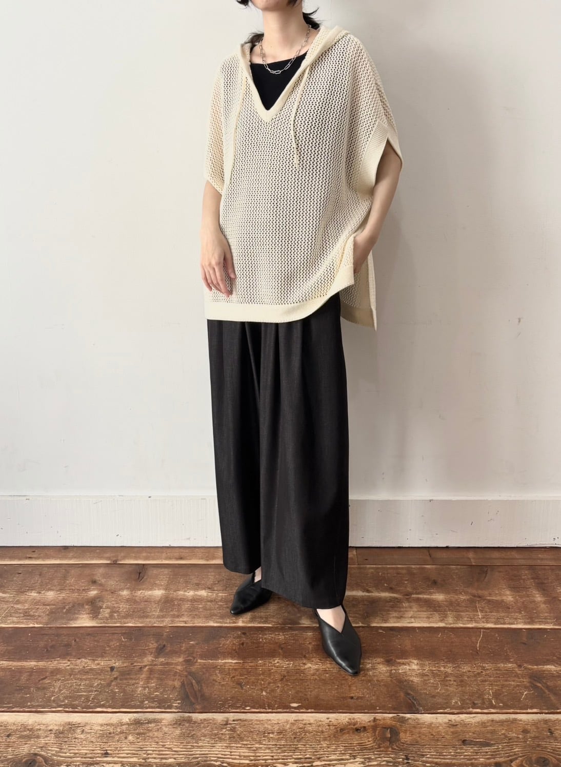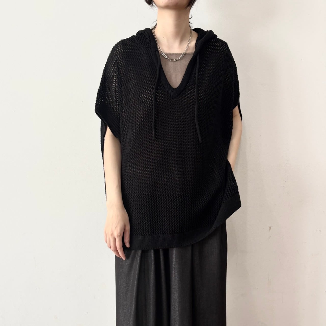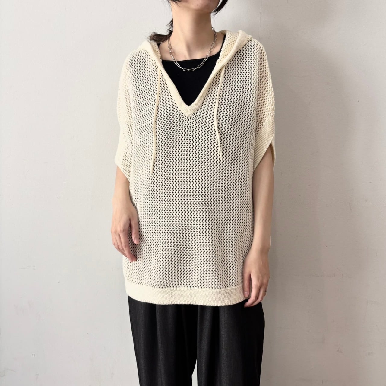 定番のコットンニットをメッシュ編みにしました。