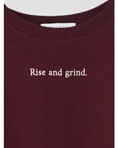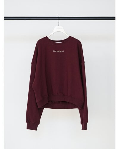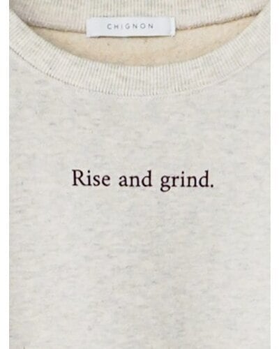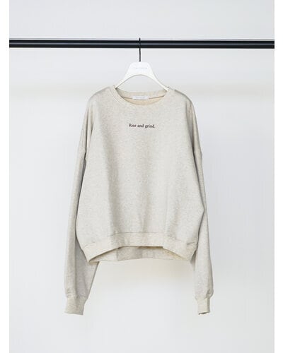 胸元には小さく”rise and grind"立ち上がり、(今日も)頑張ろう”プリントを施し、ミニマルながらも上品で印象的なデザインに仕上げています。