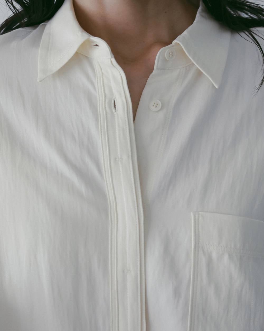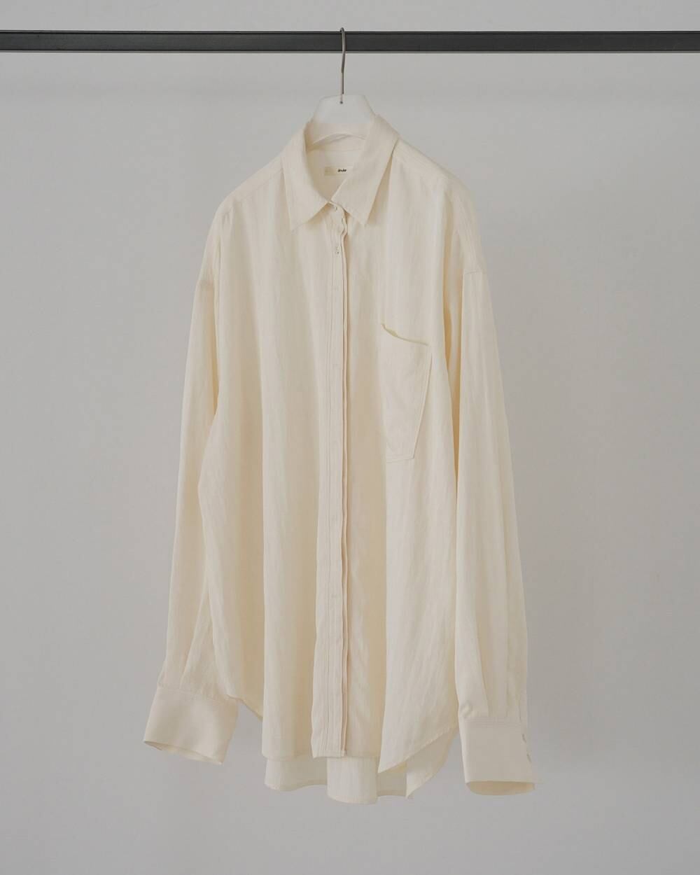 しなやかで軽い着心地が魅力のオーバーシャツ。リラックス感あるラフなシルエットで、一見シンプルに見えますが、細かなステッチワークにも注目していただきたい、ディテールにこだわった一枚。襟やヨーク、ポケットは細めのダブルステッチに、アームホールやカフスは3本ステッチを効かせています。立体的に仕立てた前立ては、台襟と第一ボタンのみ表から見える仕様にし、ボタンの留め方でフロントの印象が変化するのもポイント。着るだけでスタイリングに奥行きが生まれ、幅広いアイテムに馴染む一着。
