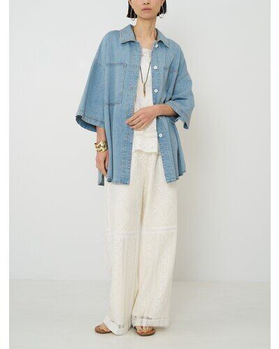 リヨセル混の柔らかな落ち感が特徴のデニム素材を使用した、カジュアルながらも女性らしさを引き立てる一着。