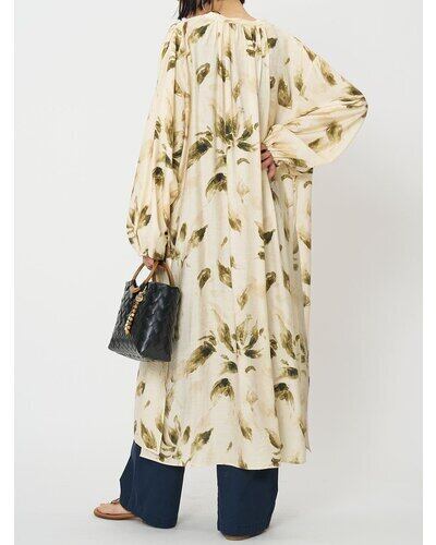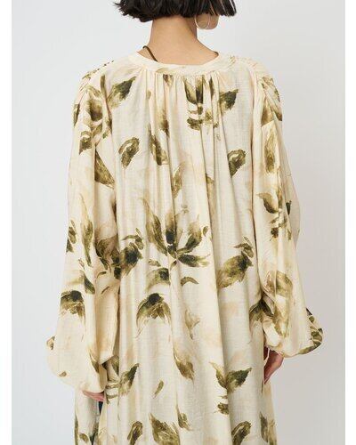 さらりとした素材感とゆとりのあるシルエットで、袖口にはさりげないギャザーを寄せ、ボリュームのあるスリーブが女性らしい柔らかさをプラス。