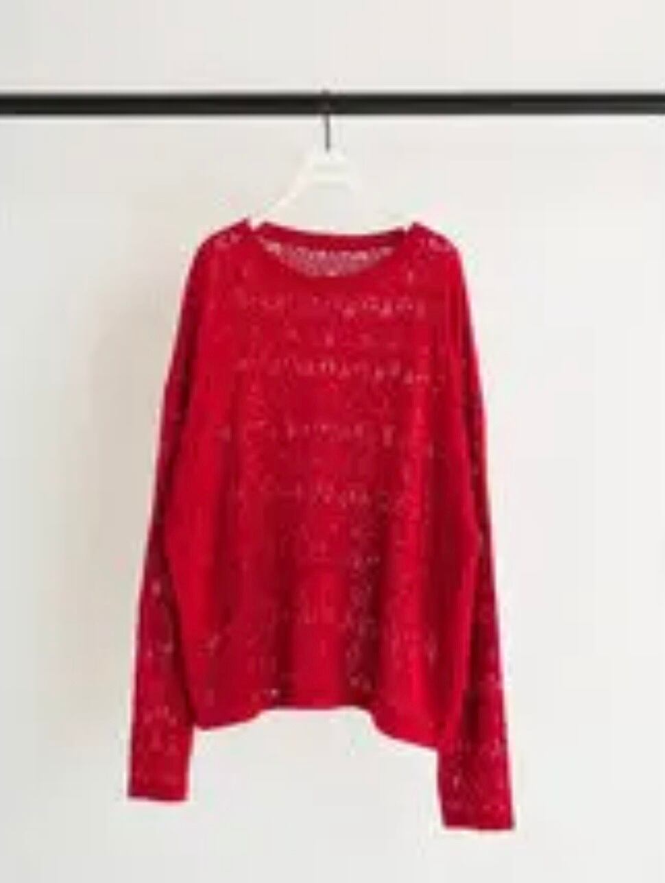 目を落としてドット柄を変形させて作ったスカシ柄ニットプルオーバー。